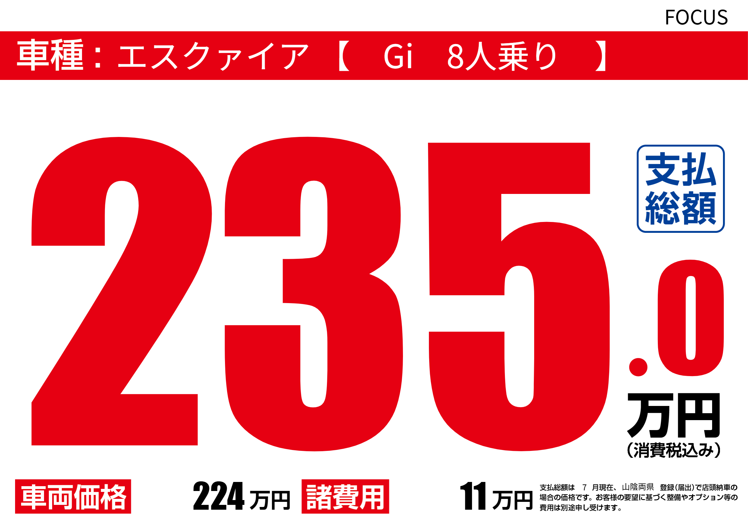 | 車名 | エスクァイア 【 Gi 8人乗り 】 | グレード ミッション 排気量 |