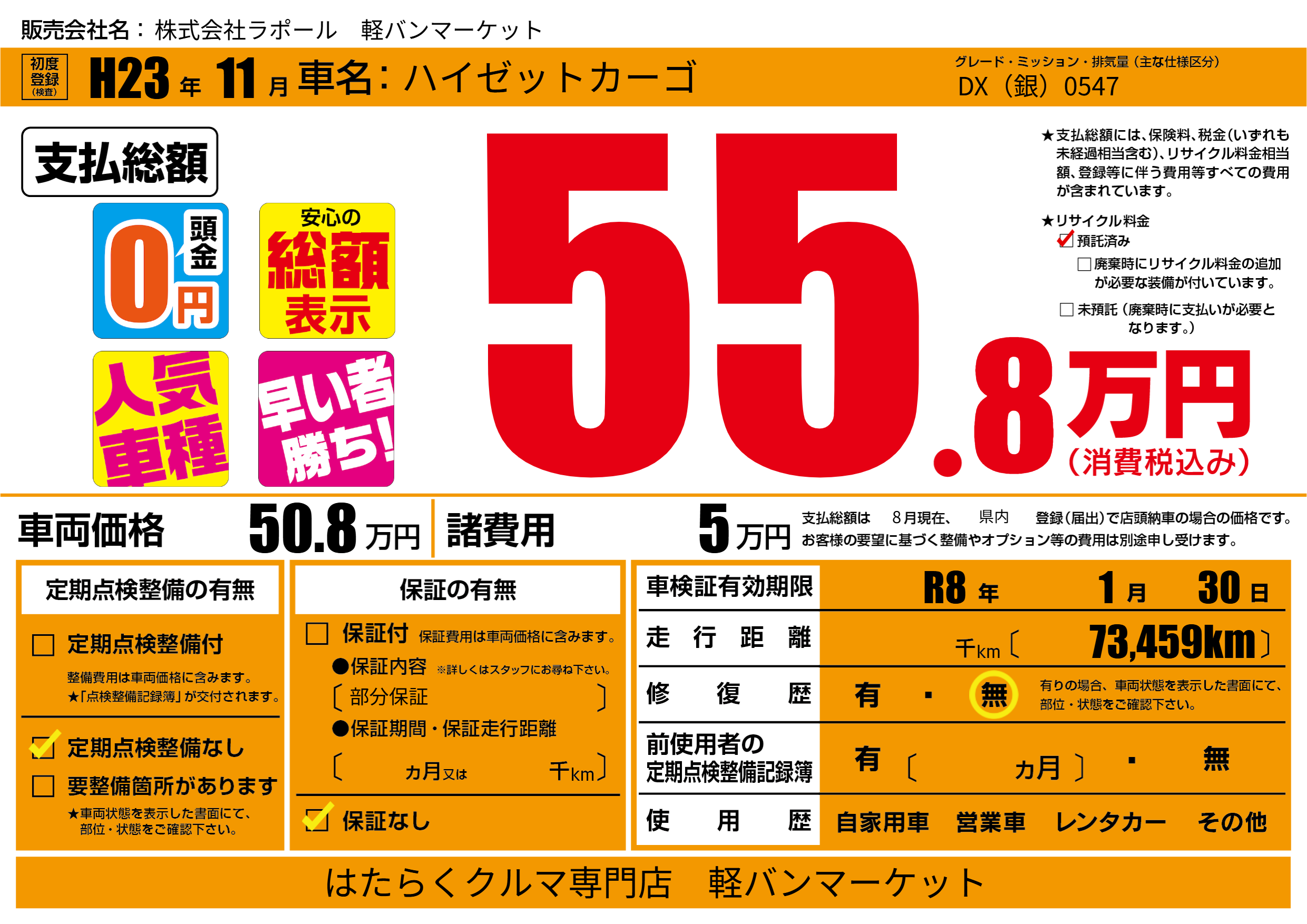 なし | 車検制限 | R8年1月30月 |