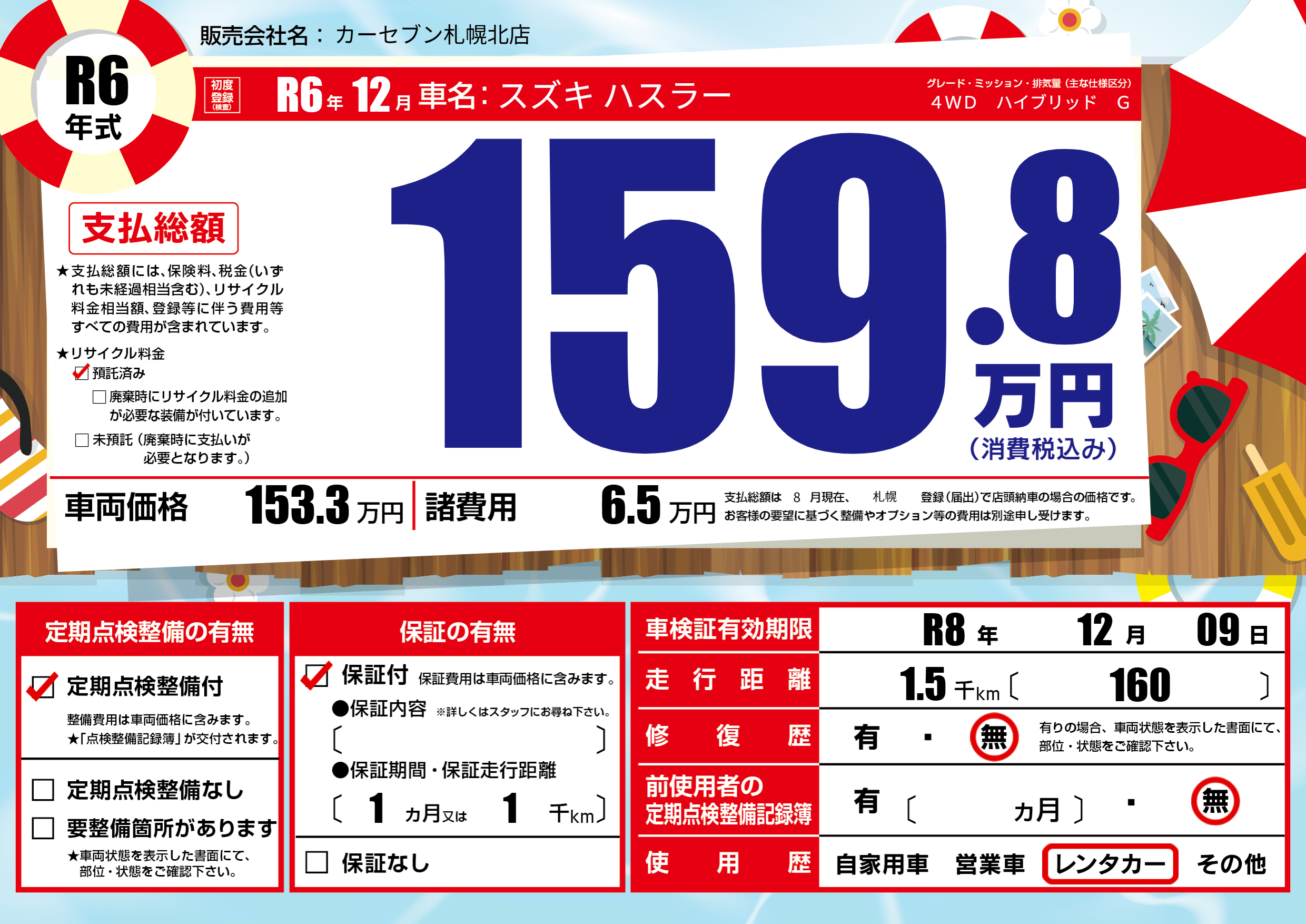 | 走行キロ | 0.1万km | 初年度登録 | R6年12月 |
