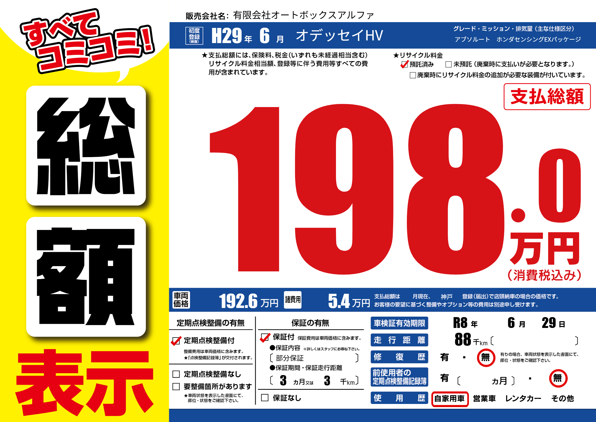 | 走行キロ | 8.8万km | 初年度登録 | H29年6月 |