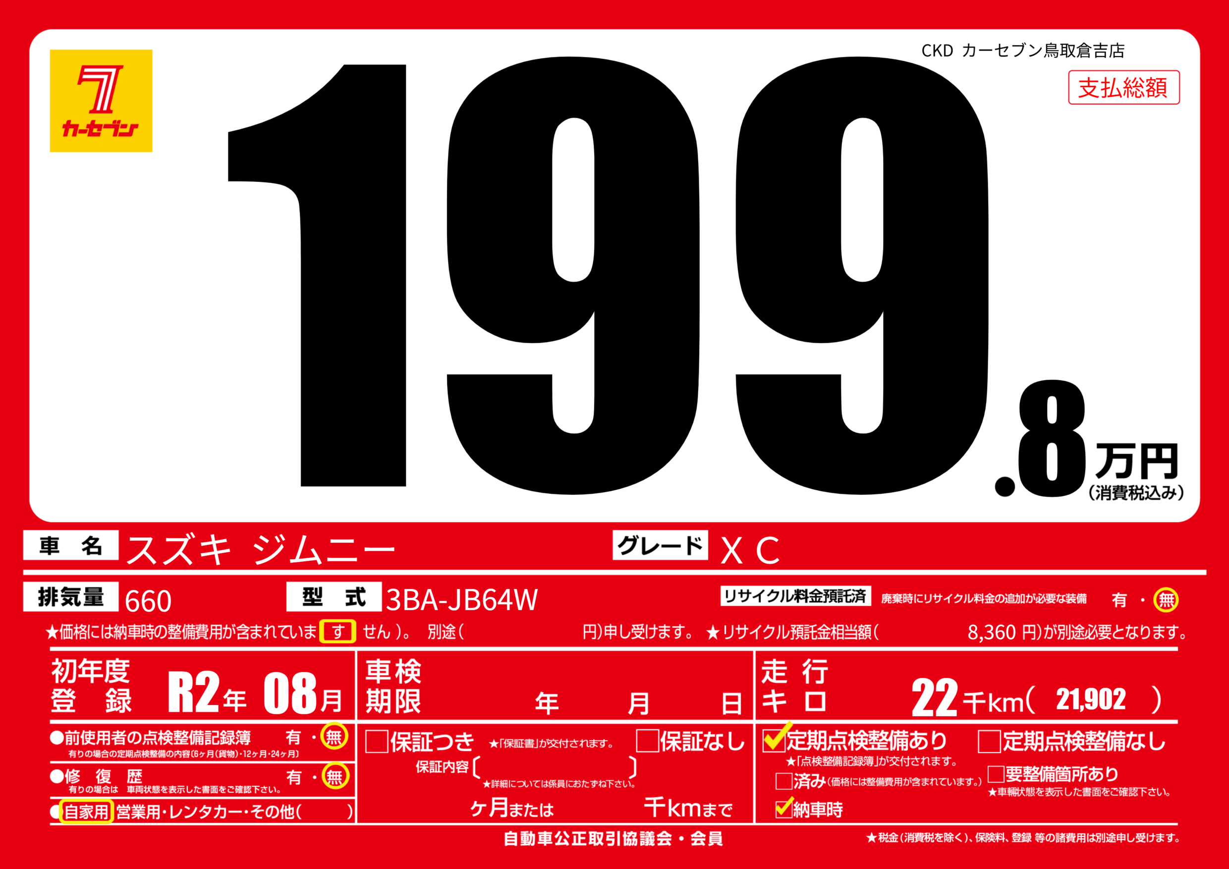 | 定期点検整備 | 定期点検整備あり 納車時あり | ||