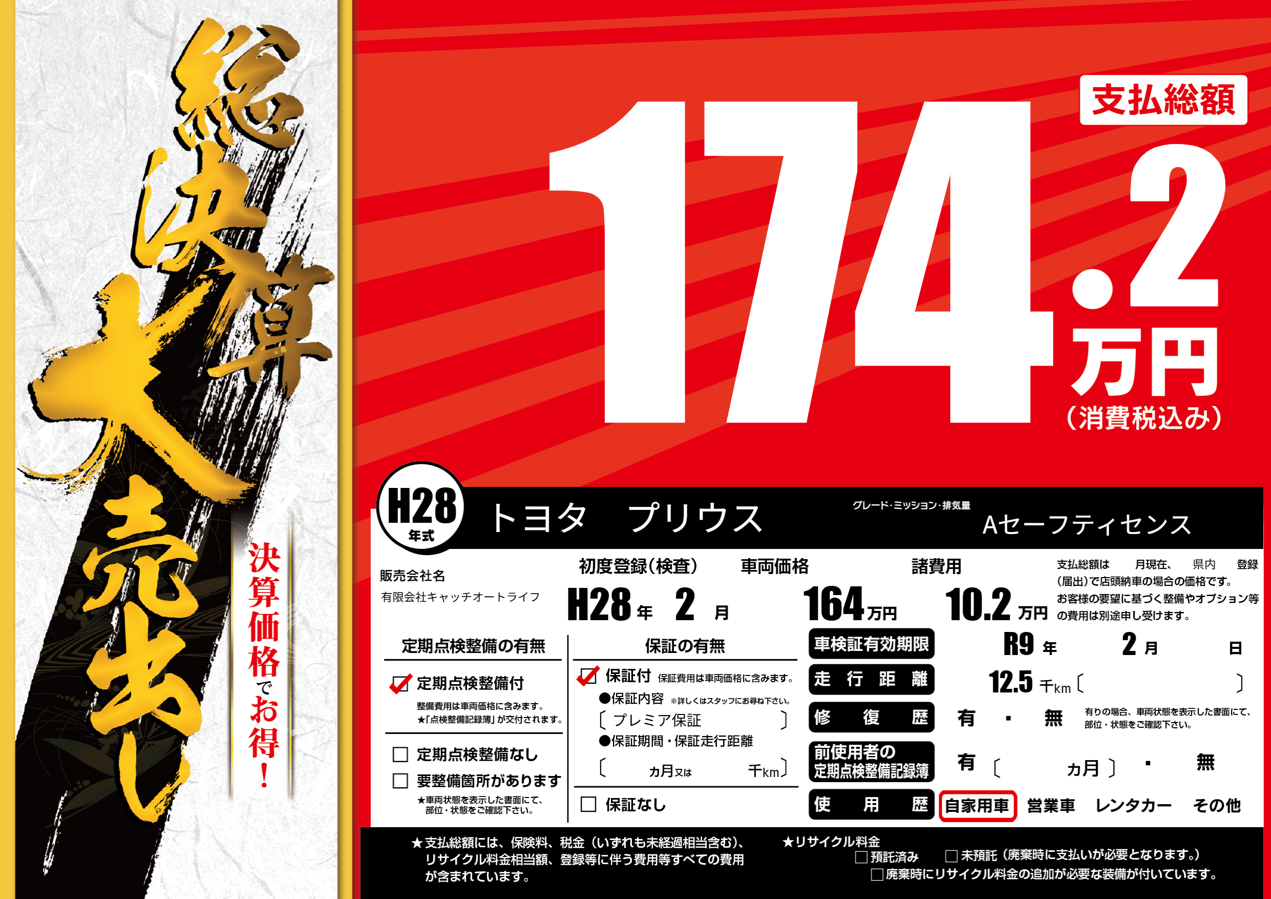 | 車名 | トヨタ プリウス | グレード ミッション 排気量 |