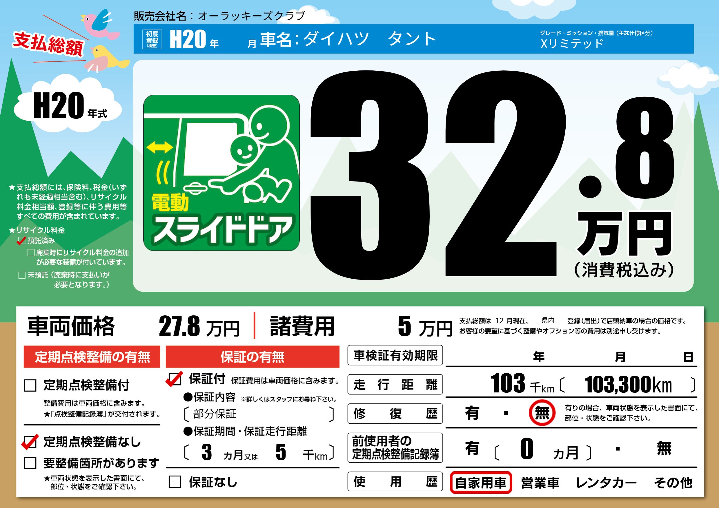| 定期点検整備 | 定期点検整備なし | ||