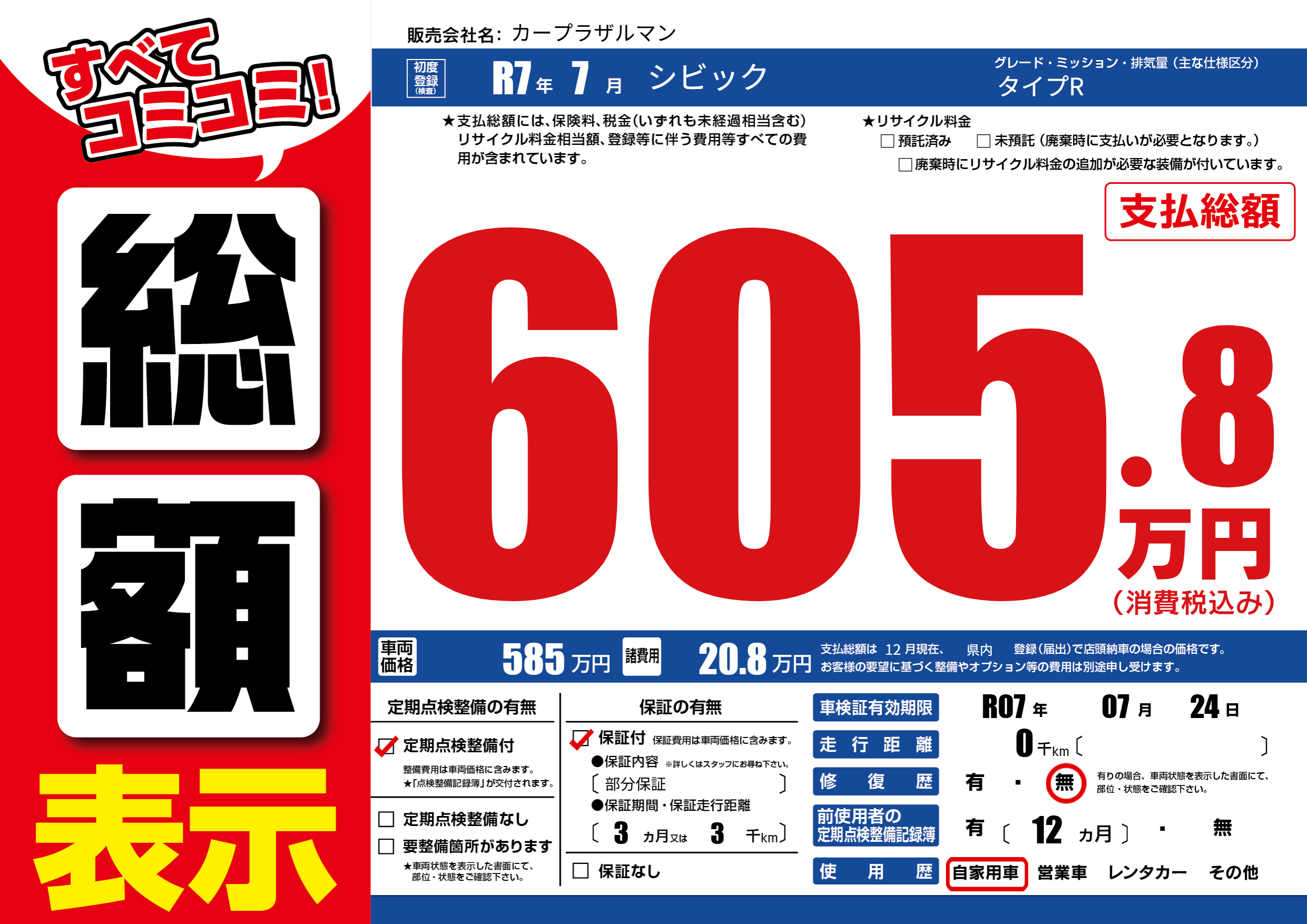 | 車検制限 | R07年 07月 24日 | ||