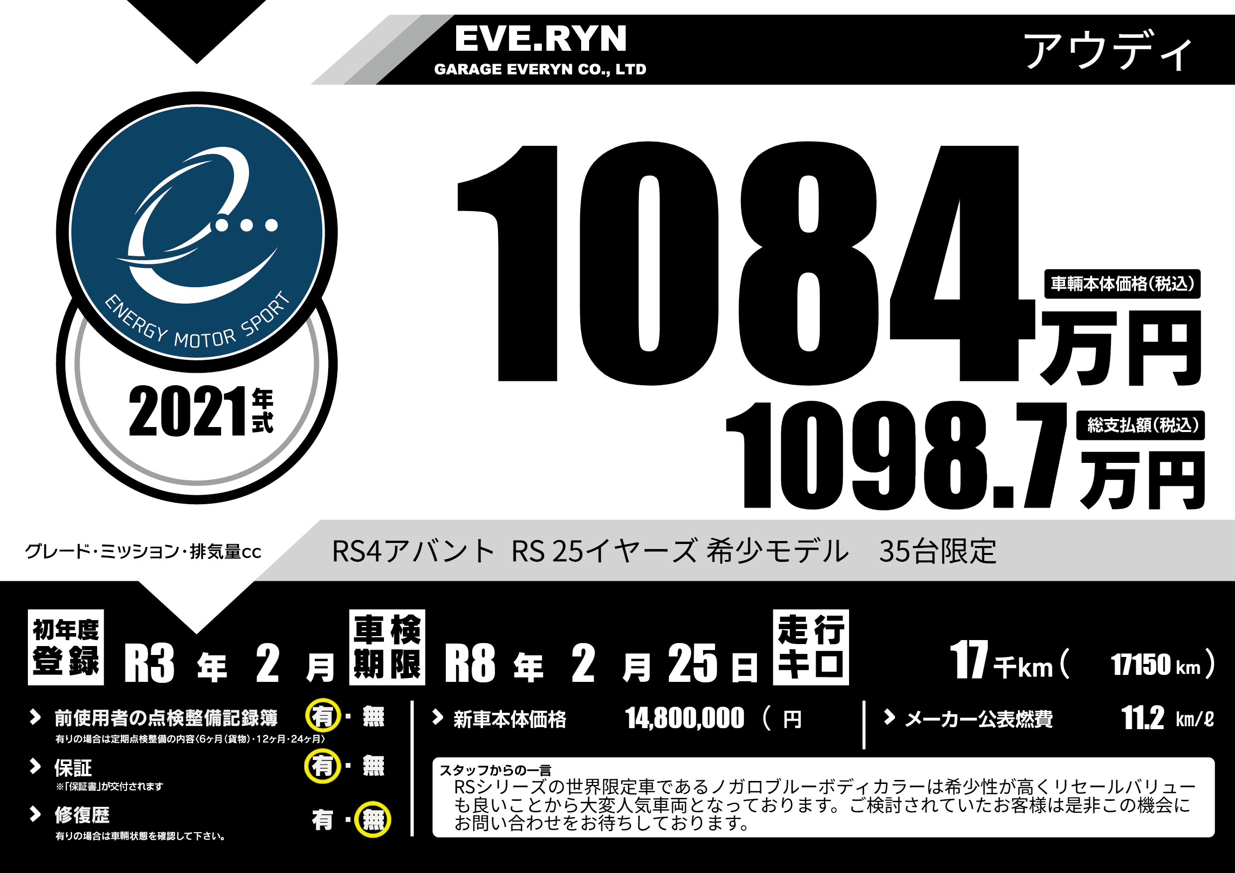 RS4アバント RS 25イヤーズ 希少モデル 35台限定 |