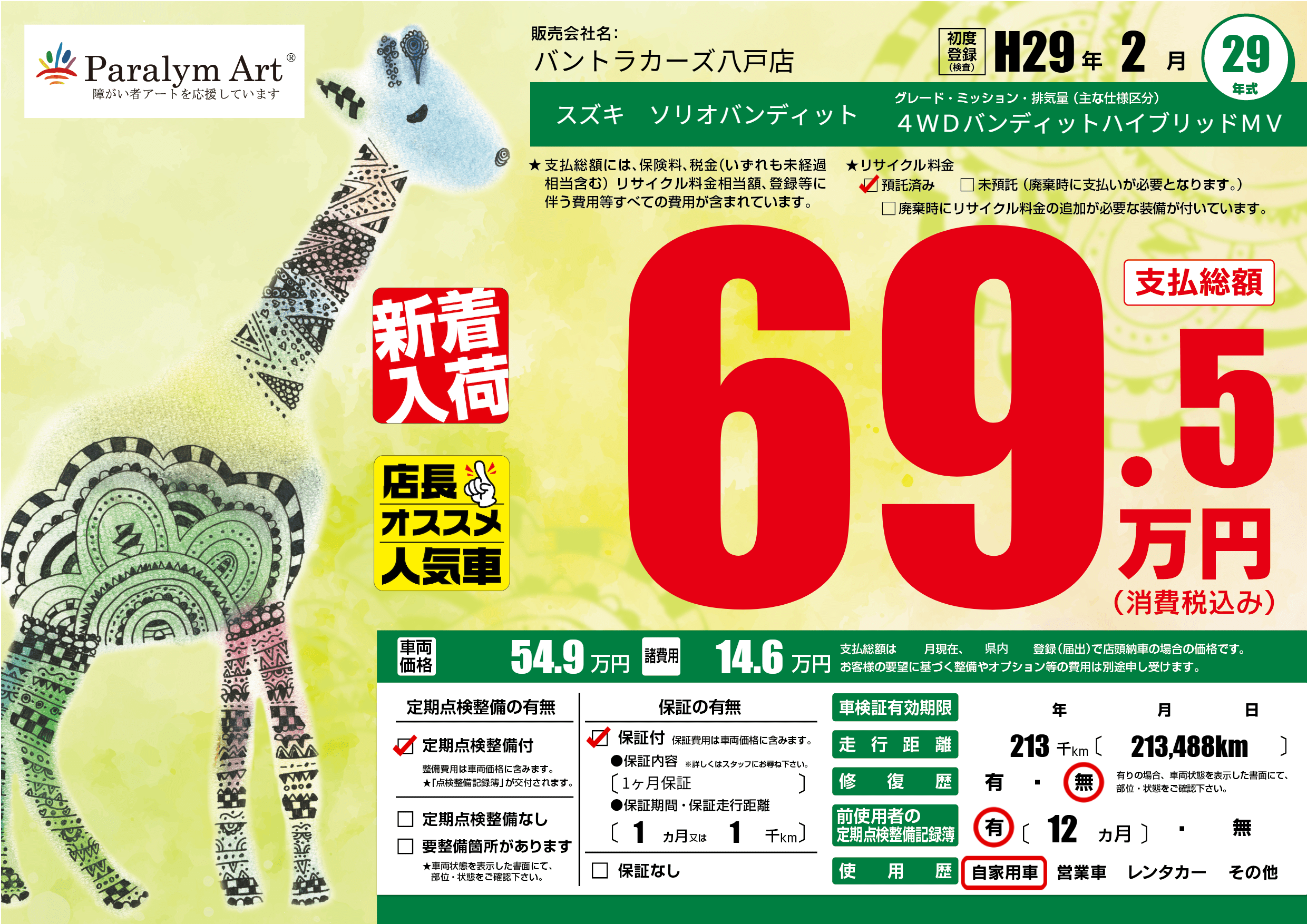 | 車名 | スズキ ソリオバンディット | グレード ミッション 排気量 |