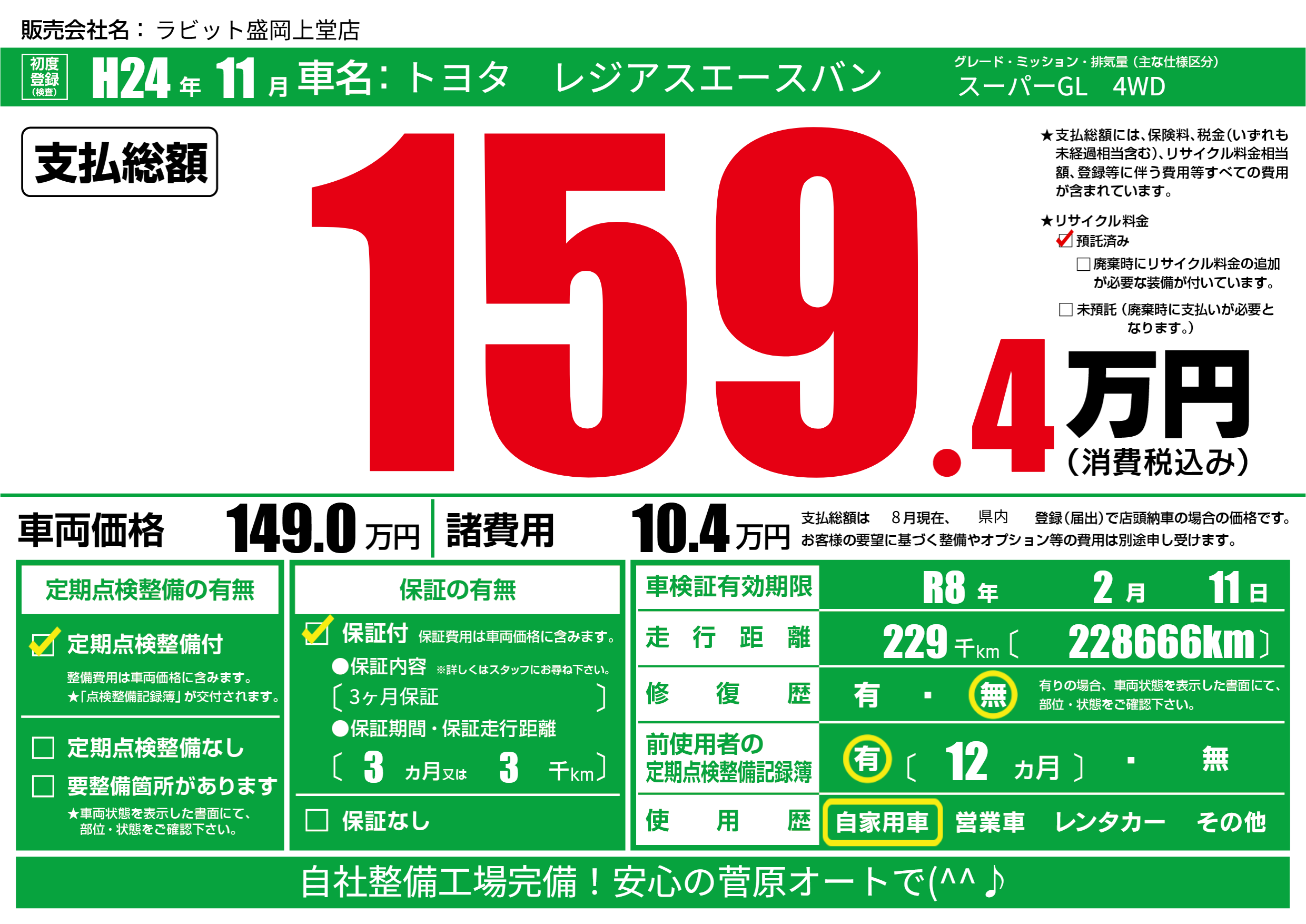 なし | 車検制限 | R8年2月11月 |