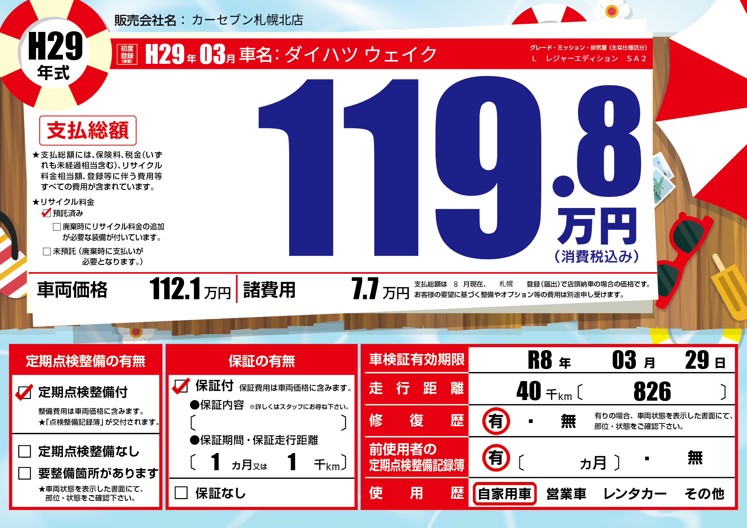 なし | 車検制限 | R8年03月29月 |