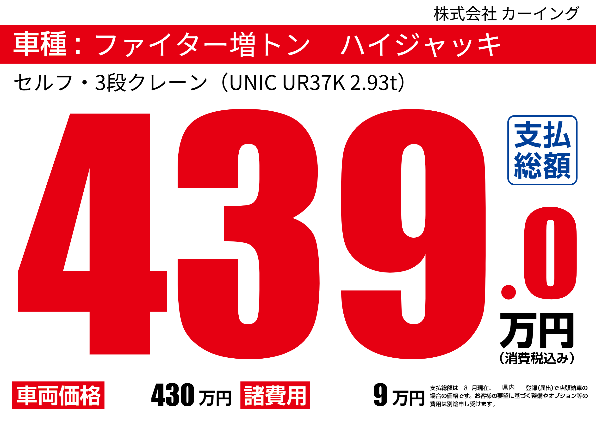 | 車名 | ファイター増トン ハイジャッキ | グレード ミッション 排気量 |