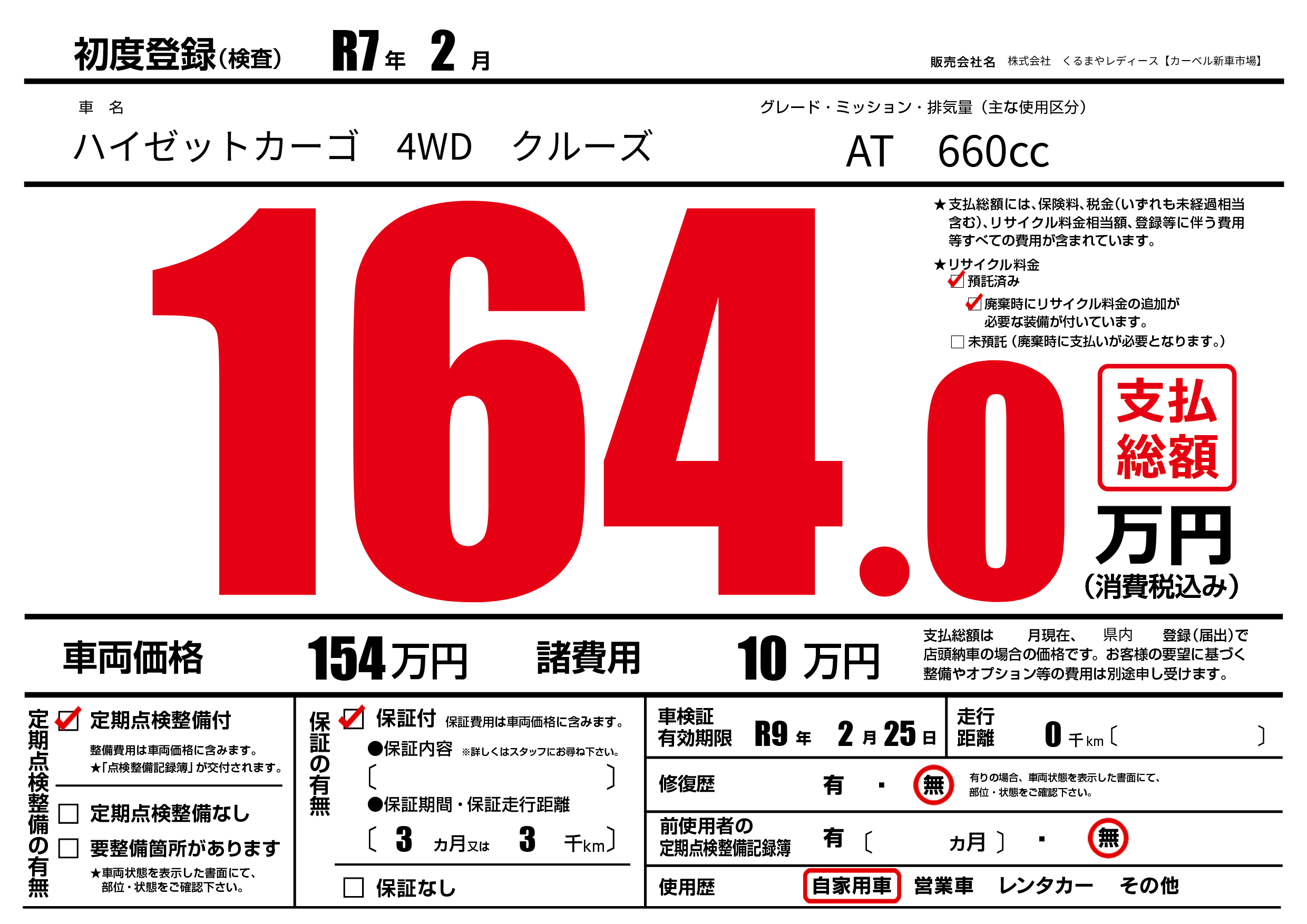 | 車検制限 | R9年 2月 25日 | ||