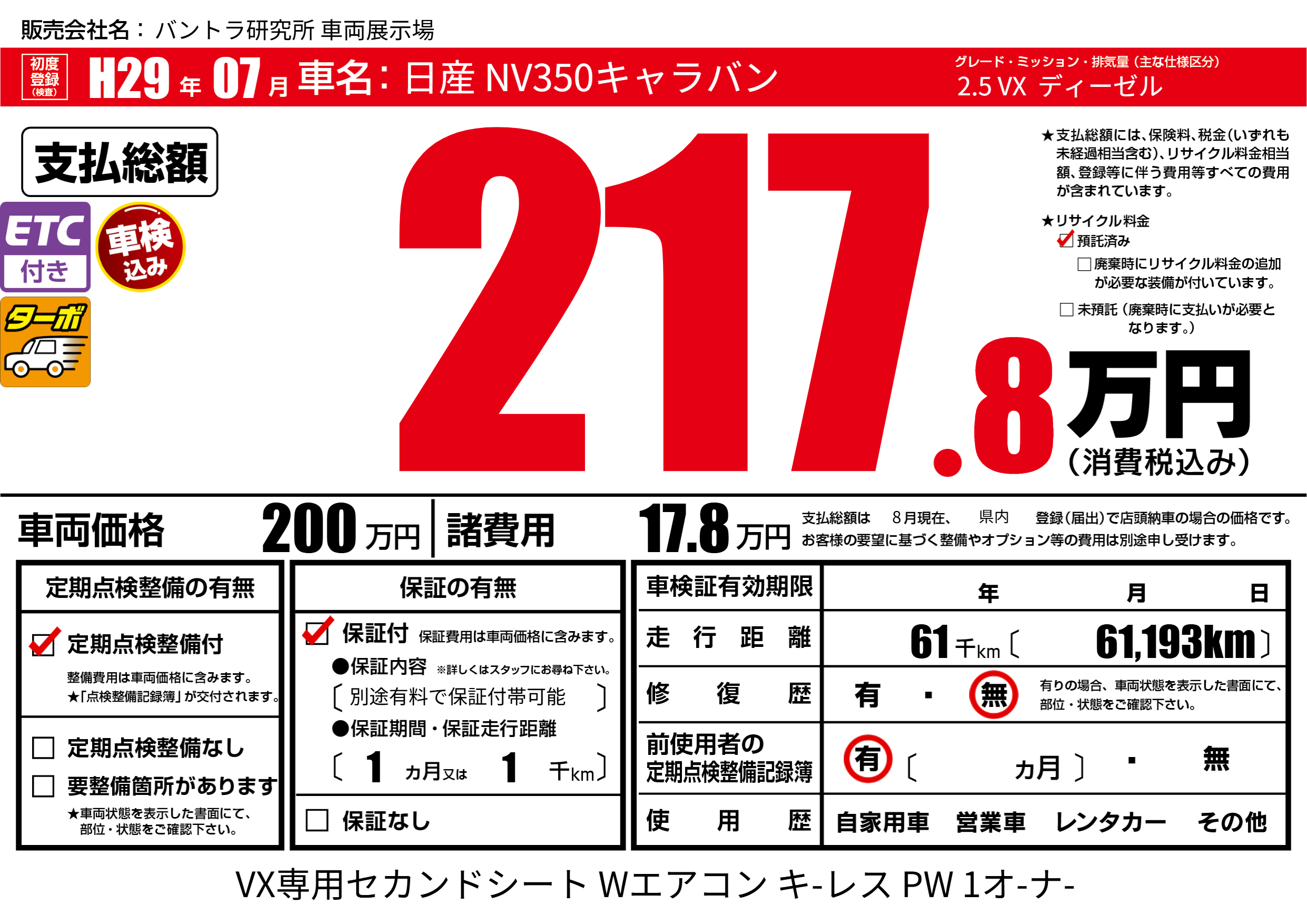 | 車検制限 | - 年 - 月 - 日 | ||