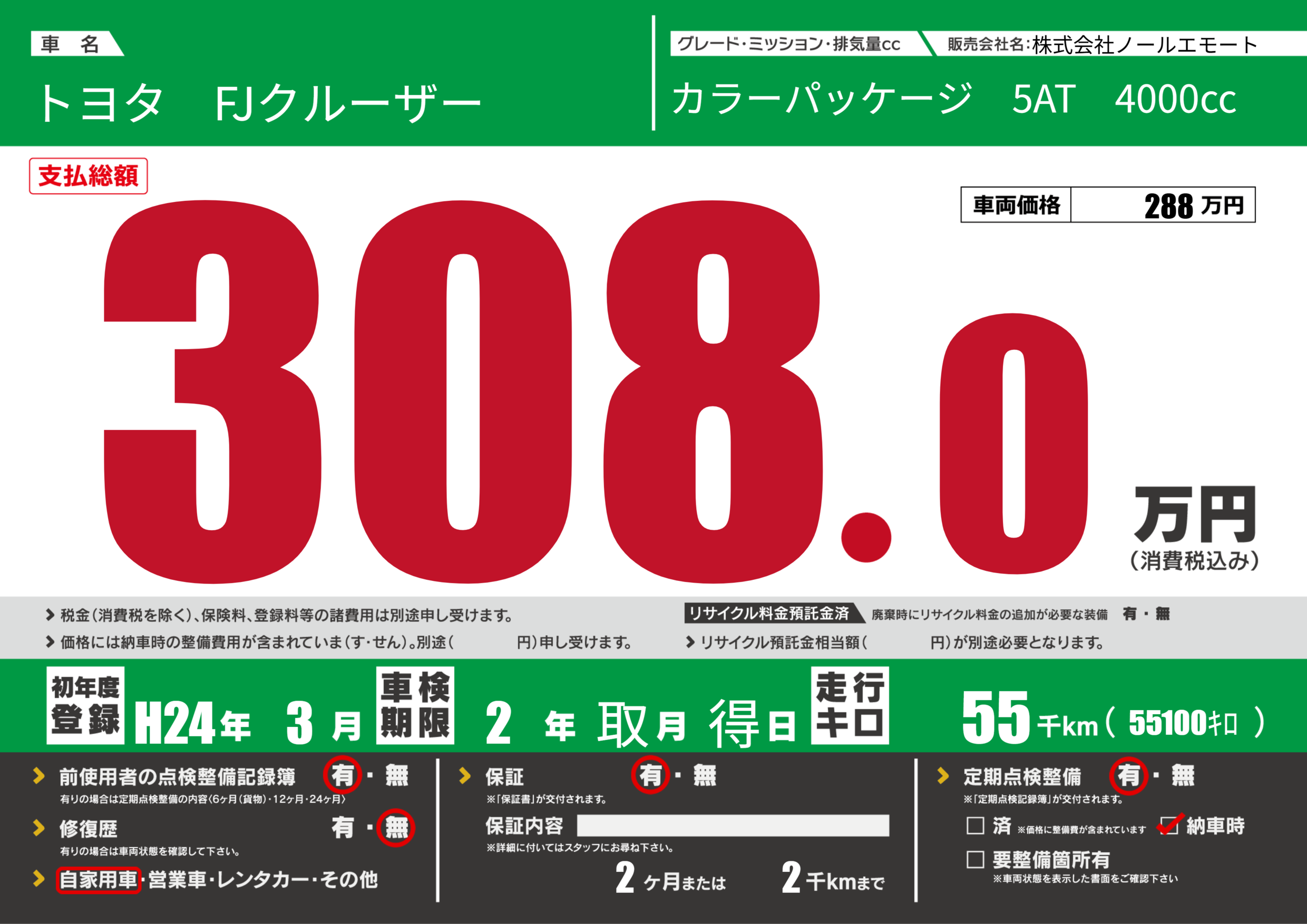 | 車名 | トヨタ FJクルーザー | グレード ミッション 排気量 |