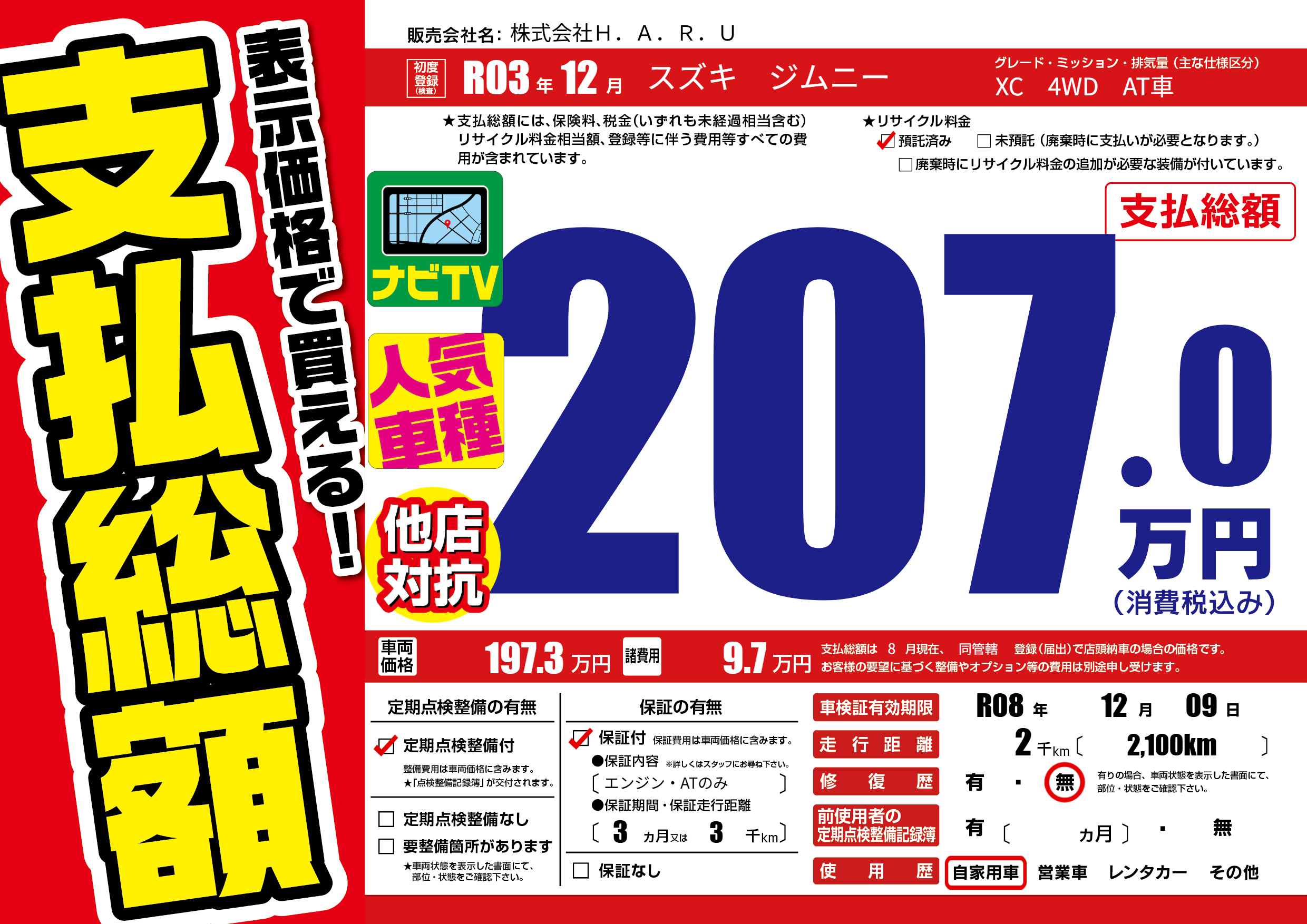 | 初年度登録 | R03年12月 | ||
