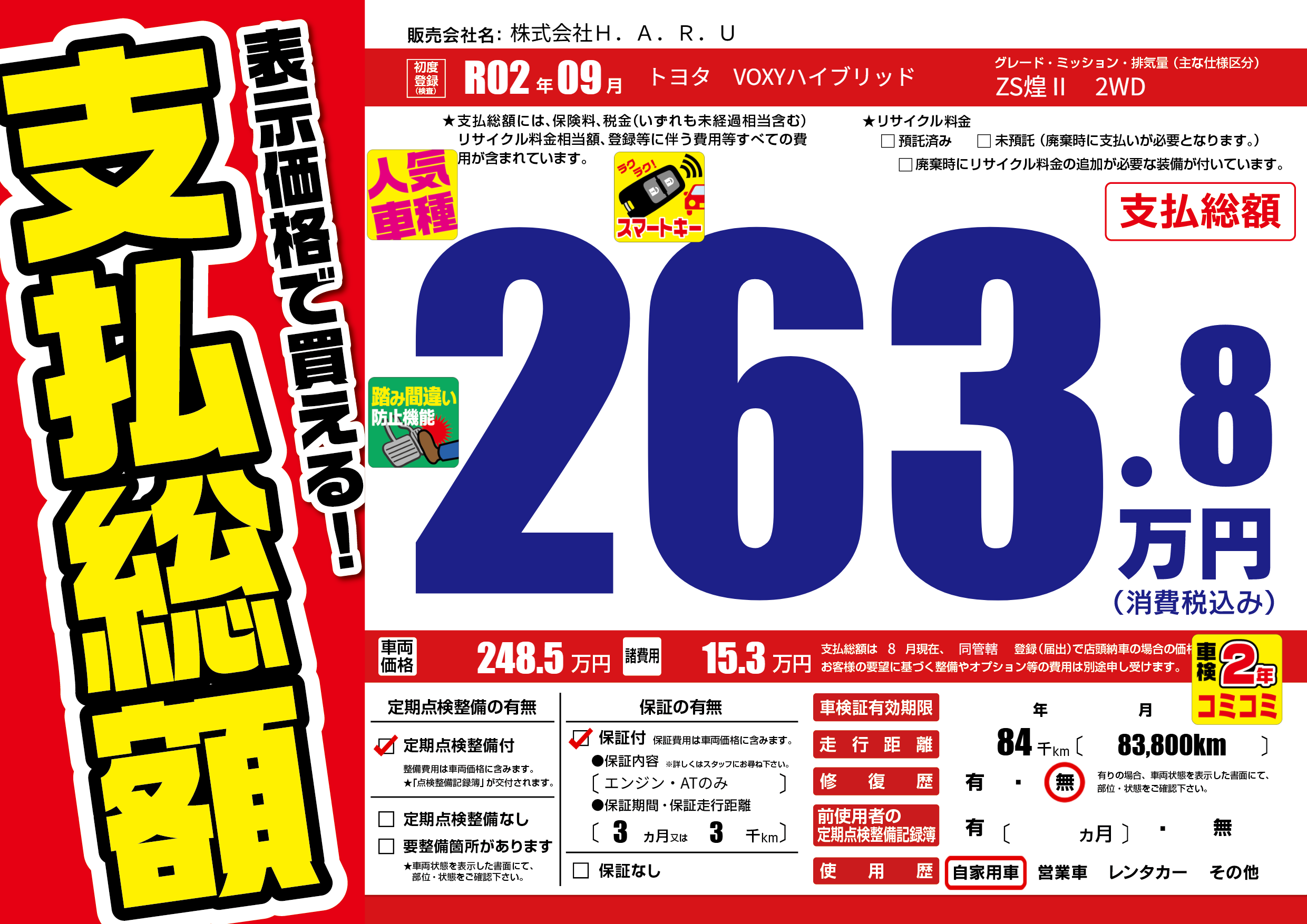 | 走行キロ | 8.4万km | 初年度登録 | R02年09月 |