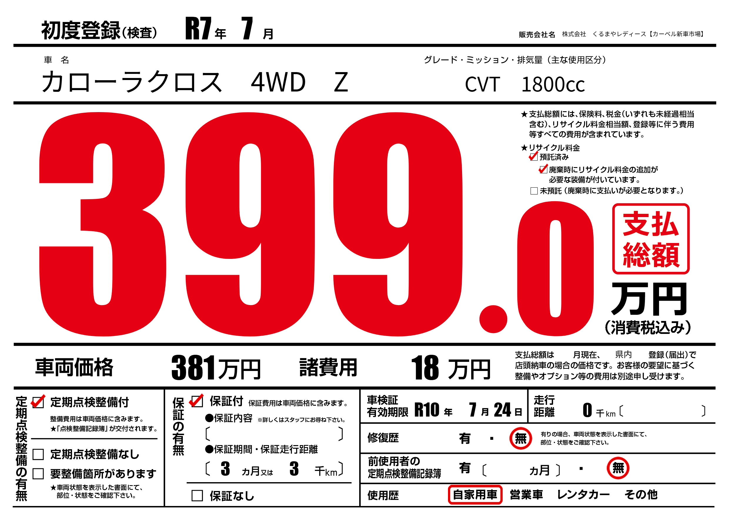 | 初年度登録 | R7年7月 | ||