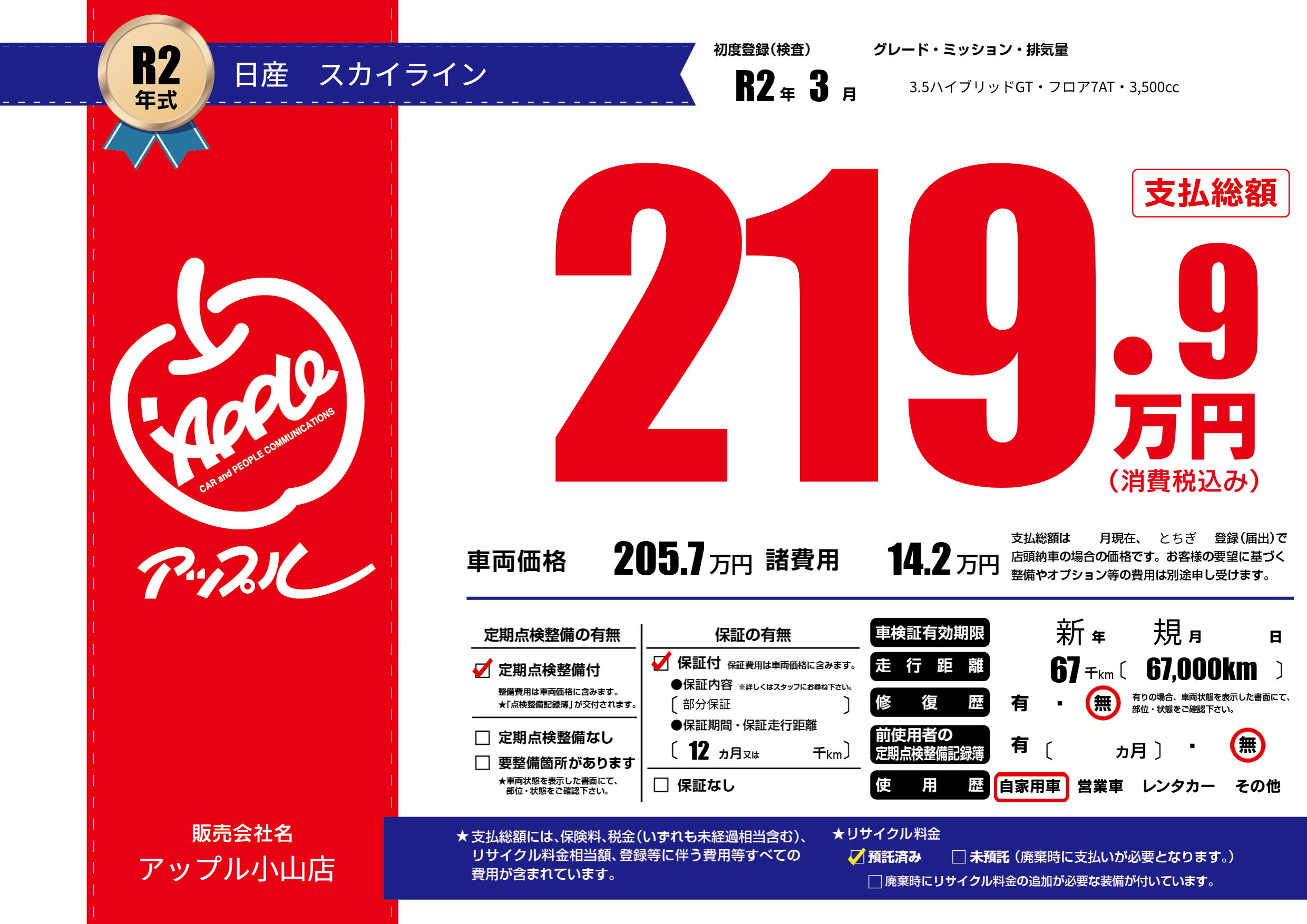 | 定期点検整備 | 定期点検整備あり | ||
