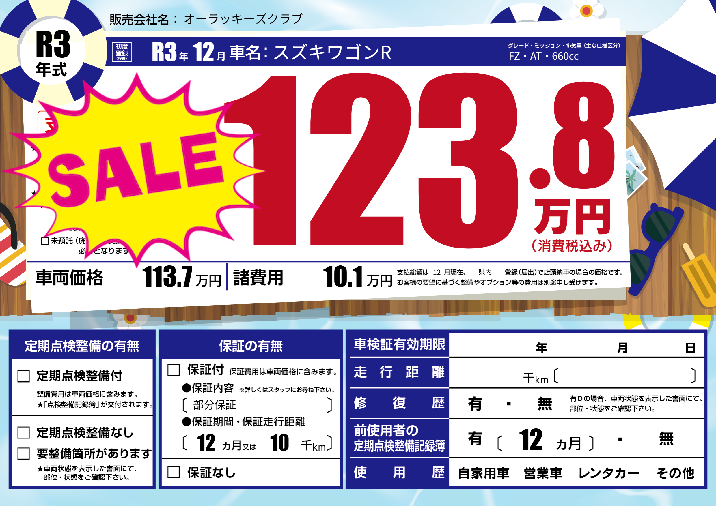 | 車検制限 | - 年 - 月 - 日 | ||