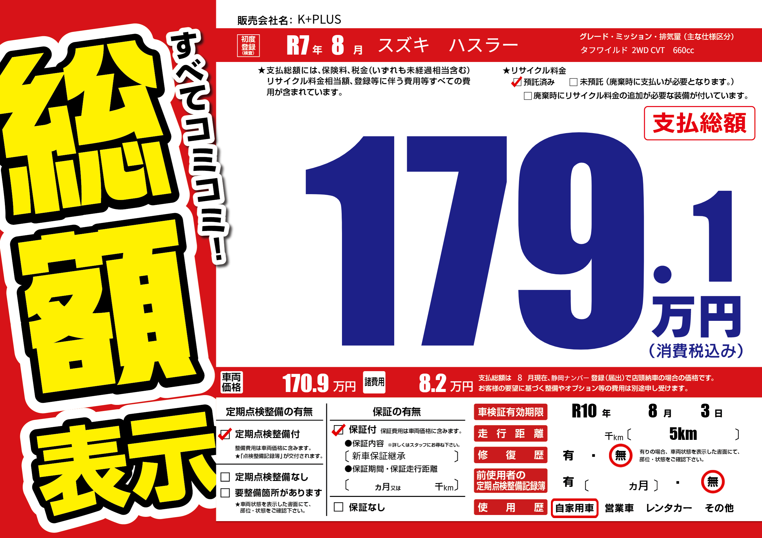 | 走行キロ | - | 初年度登録 | R7年8月 |