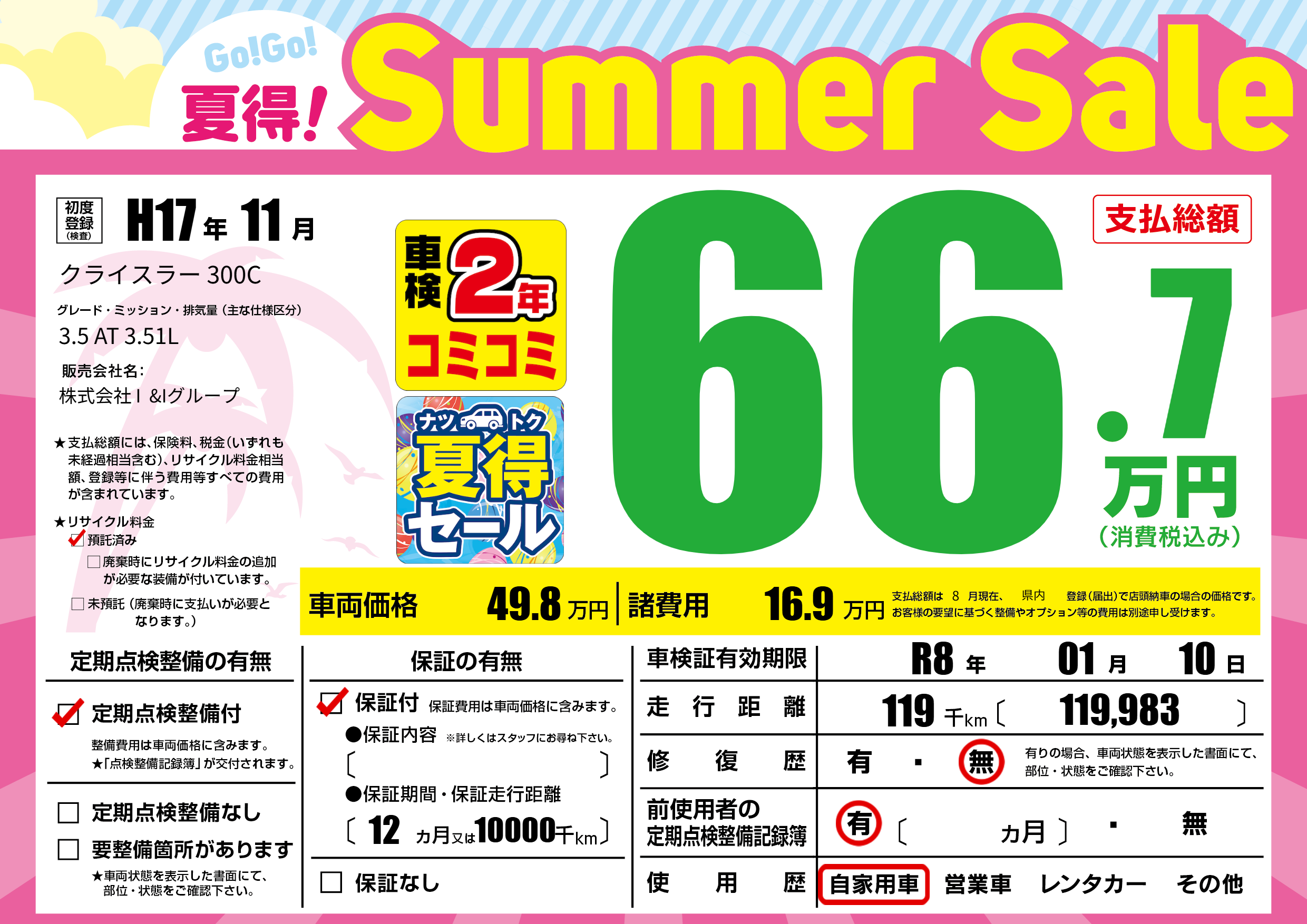 | 車名 | クライスラー 300C | グレード ミッション 排気量 |