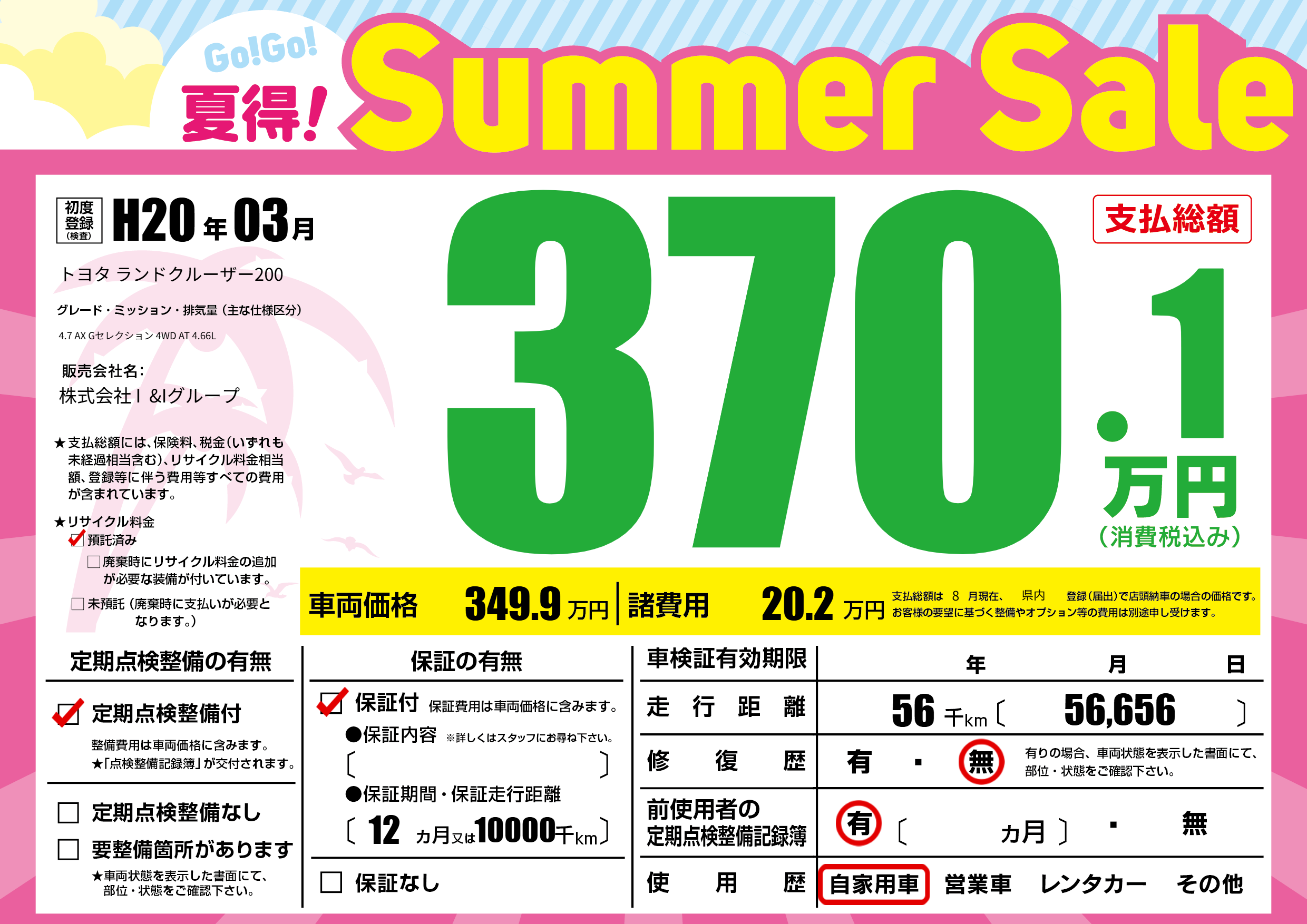 | 車名 | トヨタ ランドクルーザー200 | グレード ミッション 排気量 |