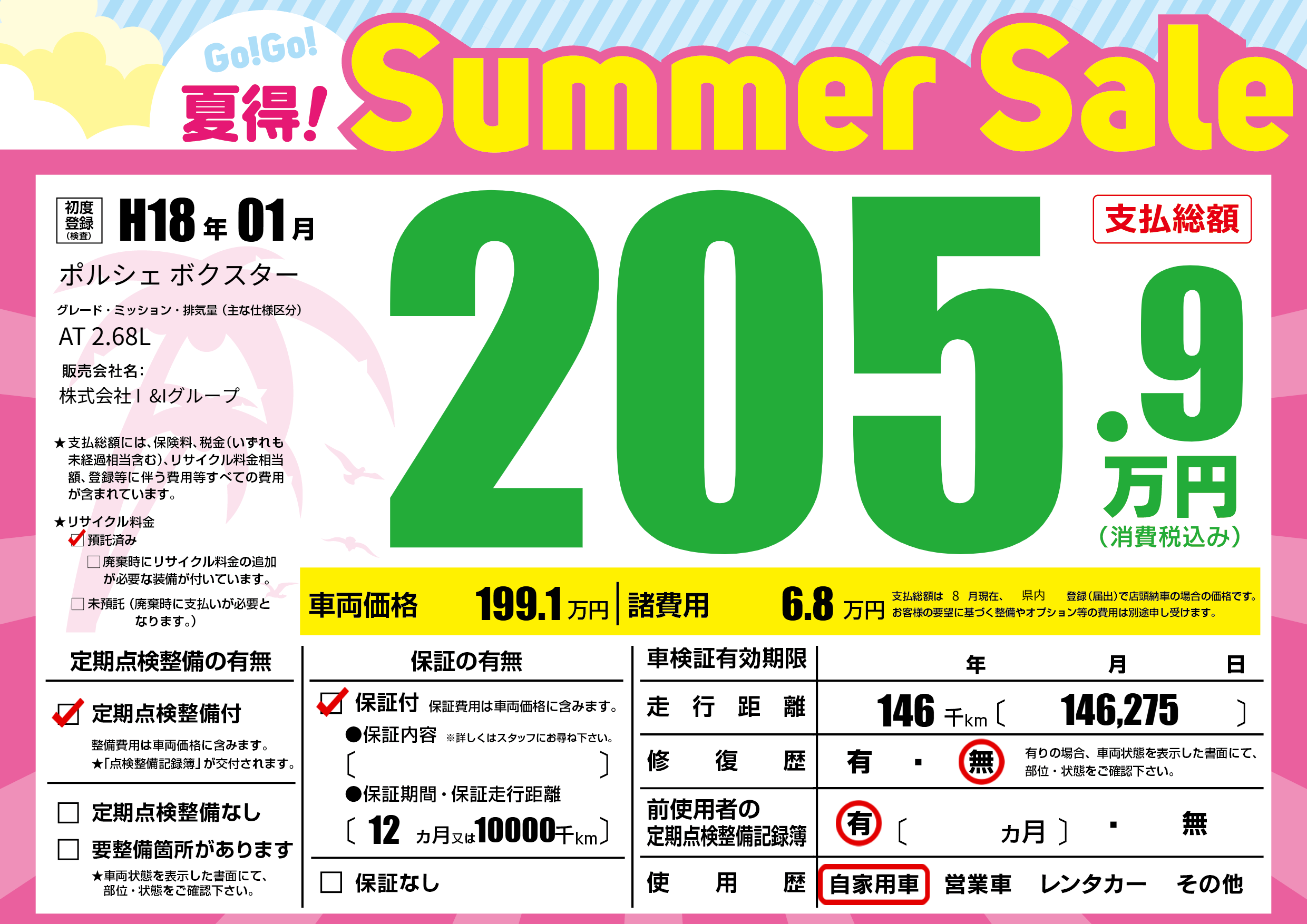 | 車名 | ポルシェ ボクスター | グレード ミッション 排気量 |