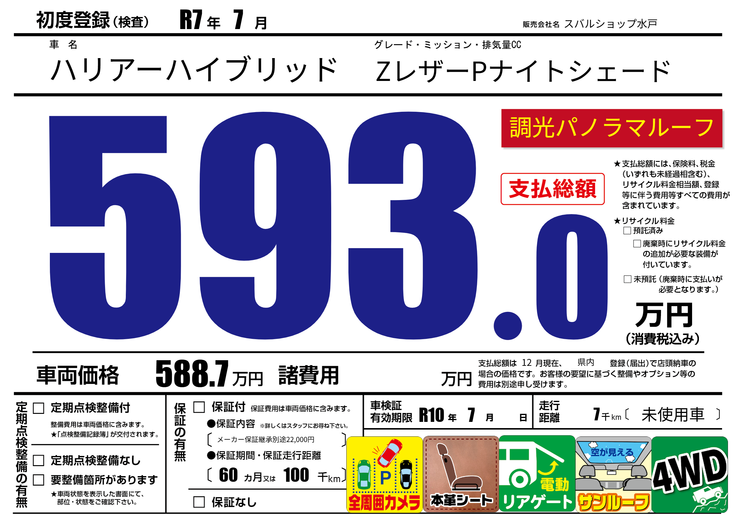| 車検制限 | R10年 7月 - 日 | ||