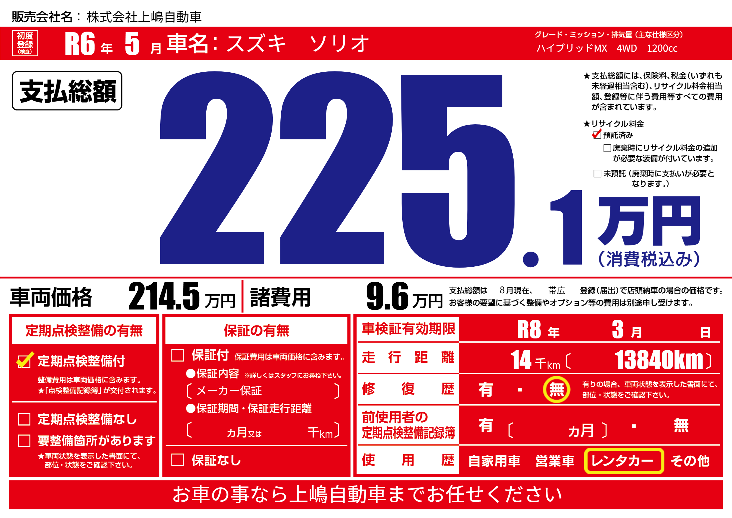 なし | 車検制限 | R8年3月---月 |