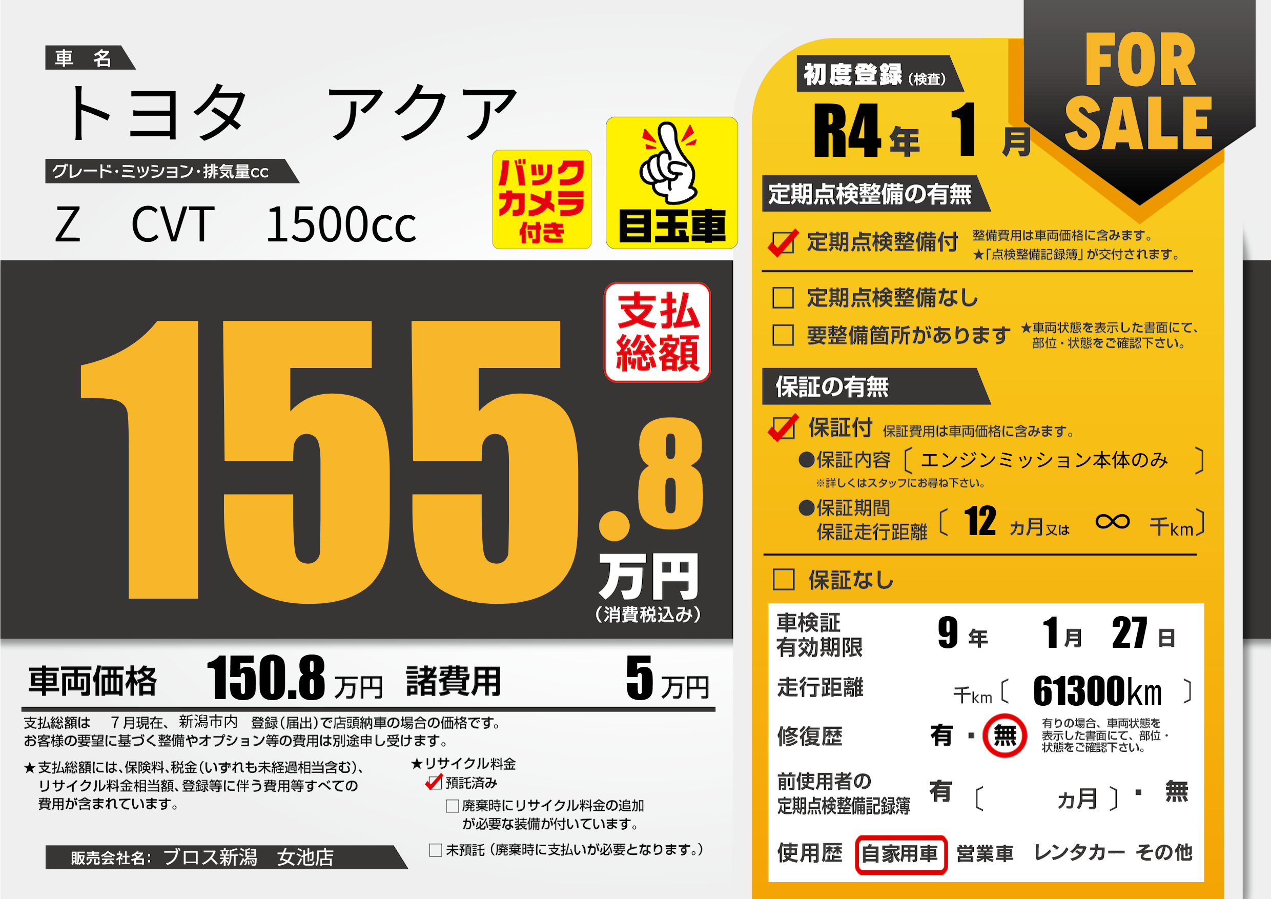 なし | 車検制限 | 9年1月27月 |