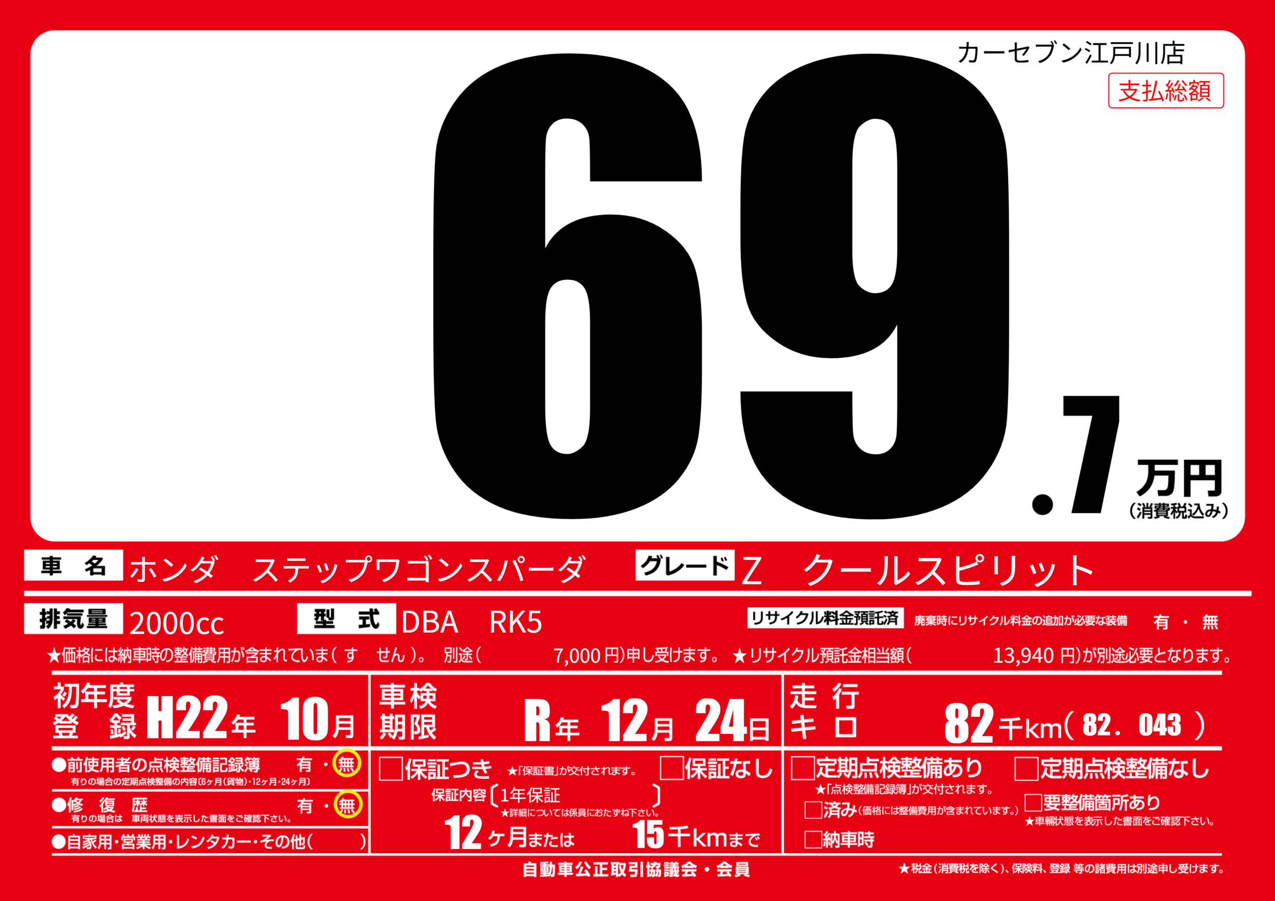 | 車検制限 | R年 12月 24日 | ||