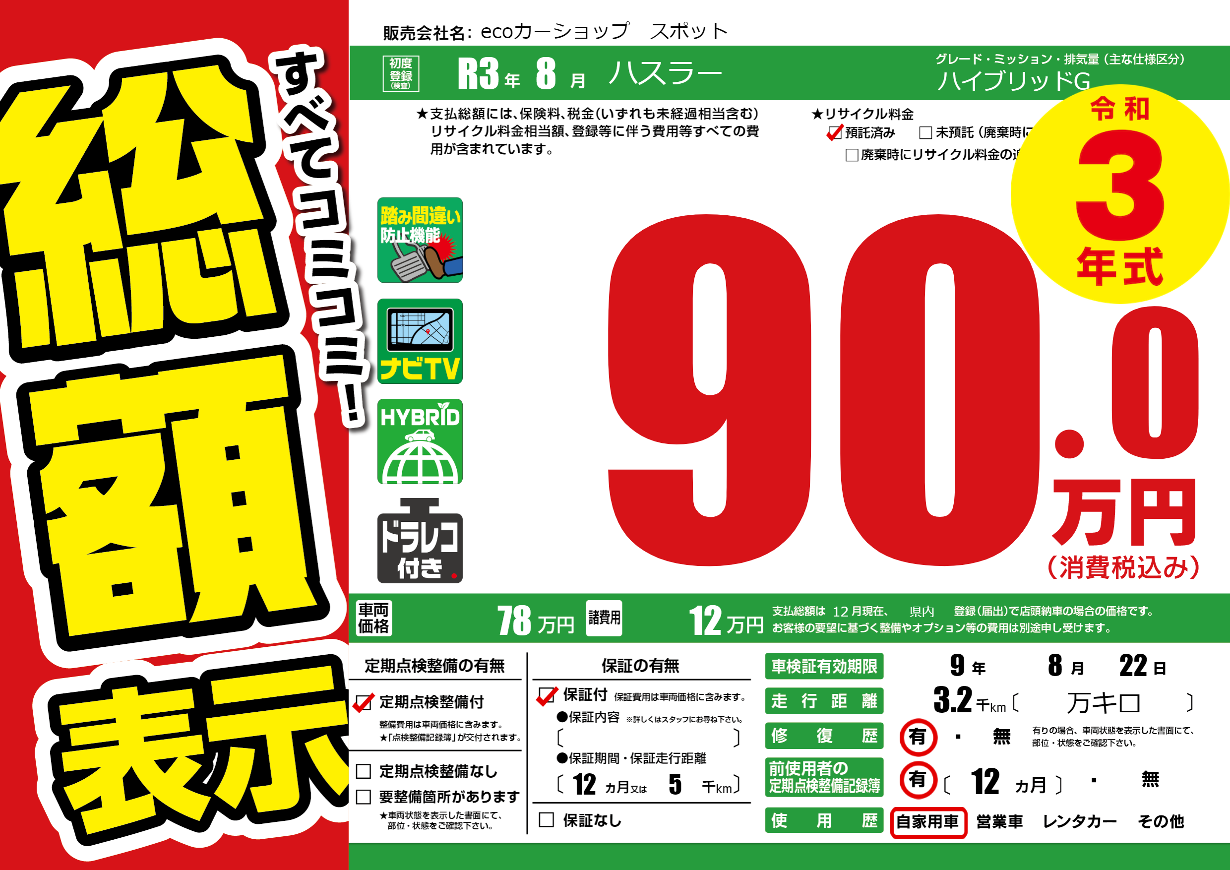 | 車名 | ハスラー | グレード ミッション 排気量 |