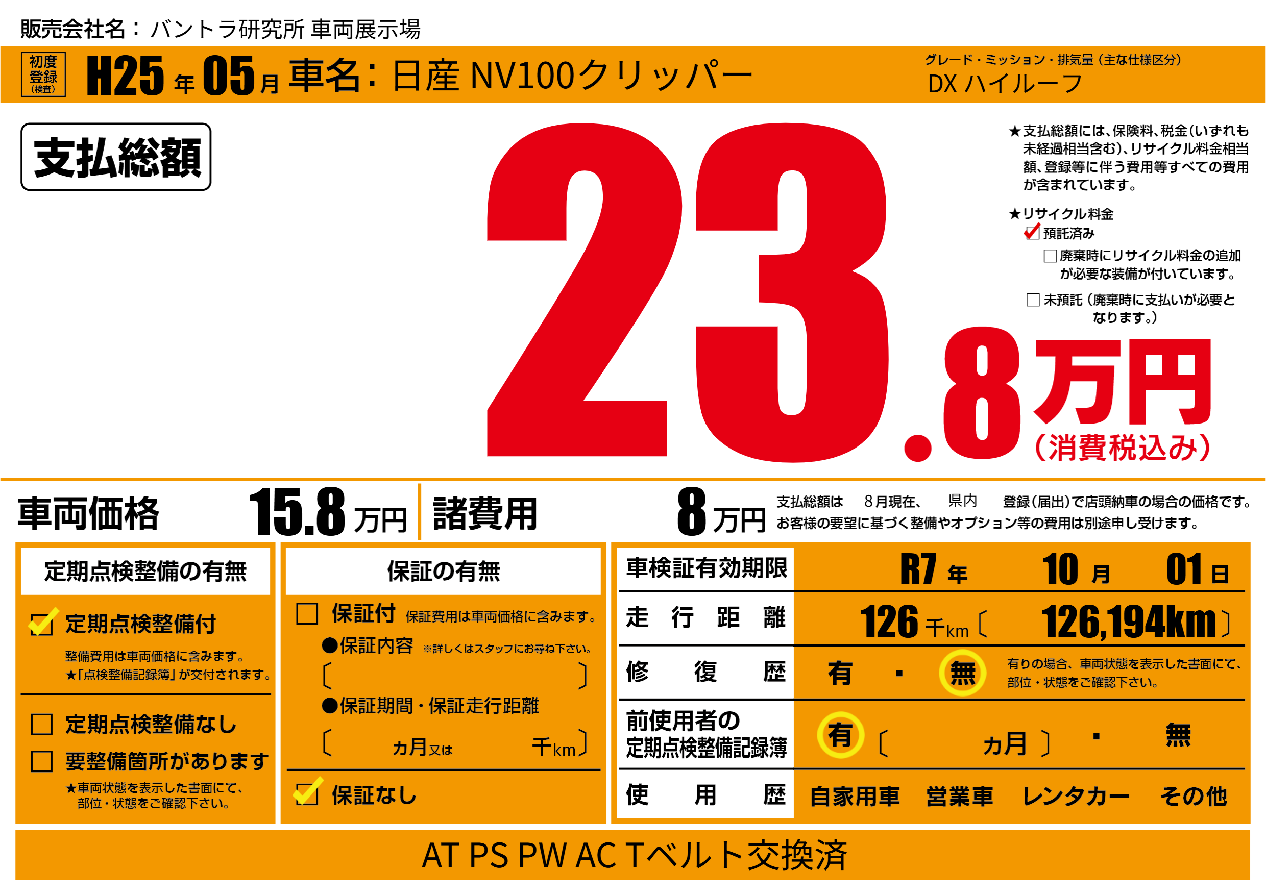 なし | 車検制限 | R7年10月01月 |
