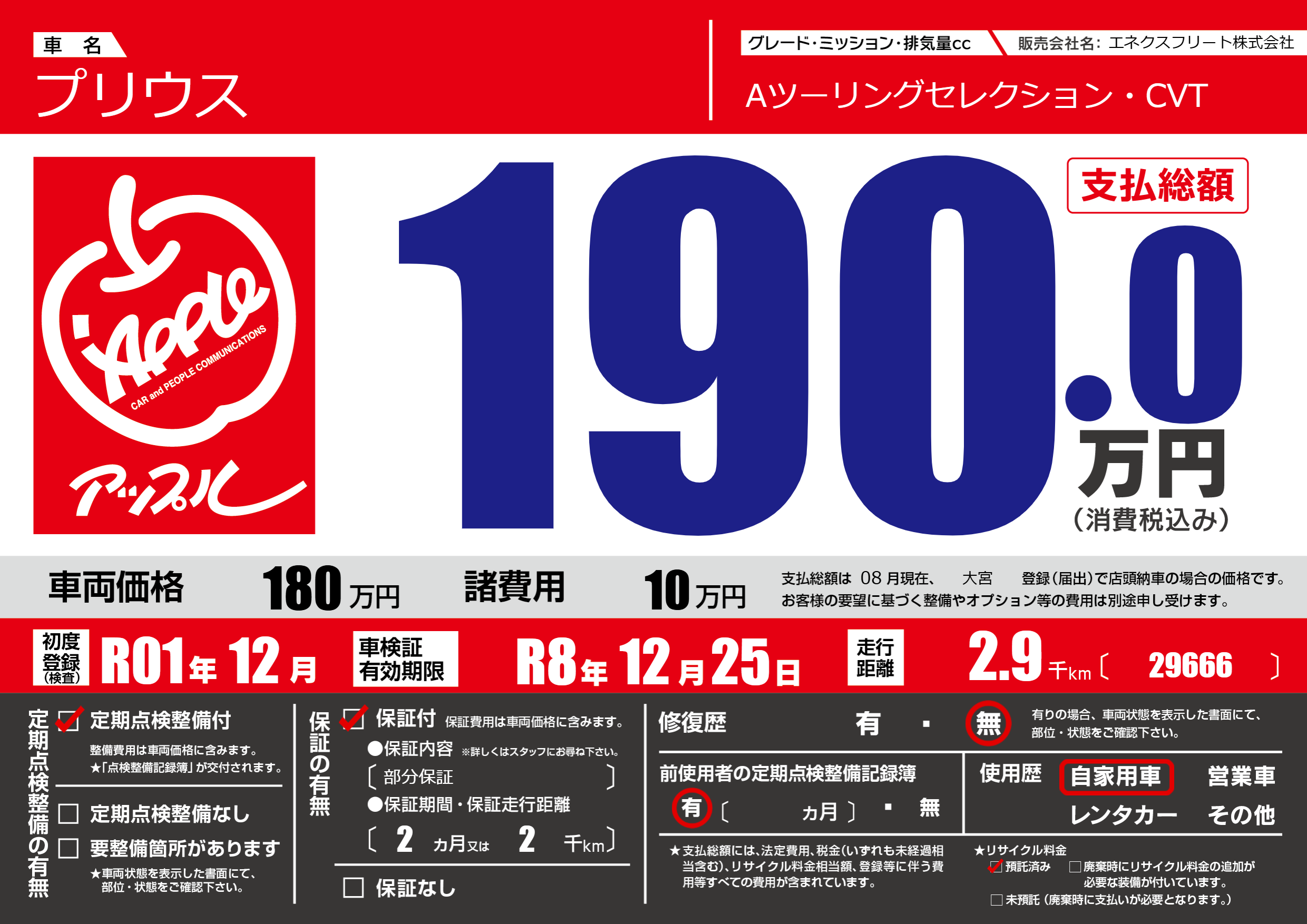 | 定期点検整備 | 定期点検整備あり | ||