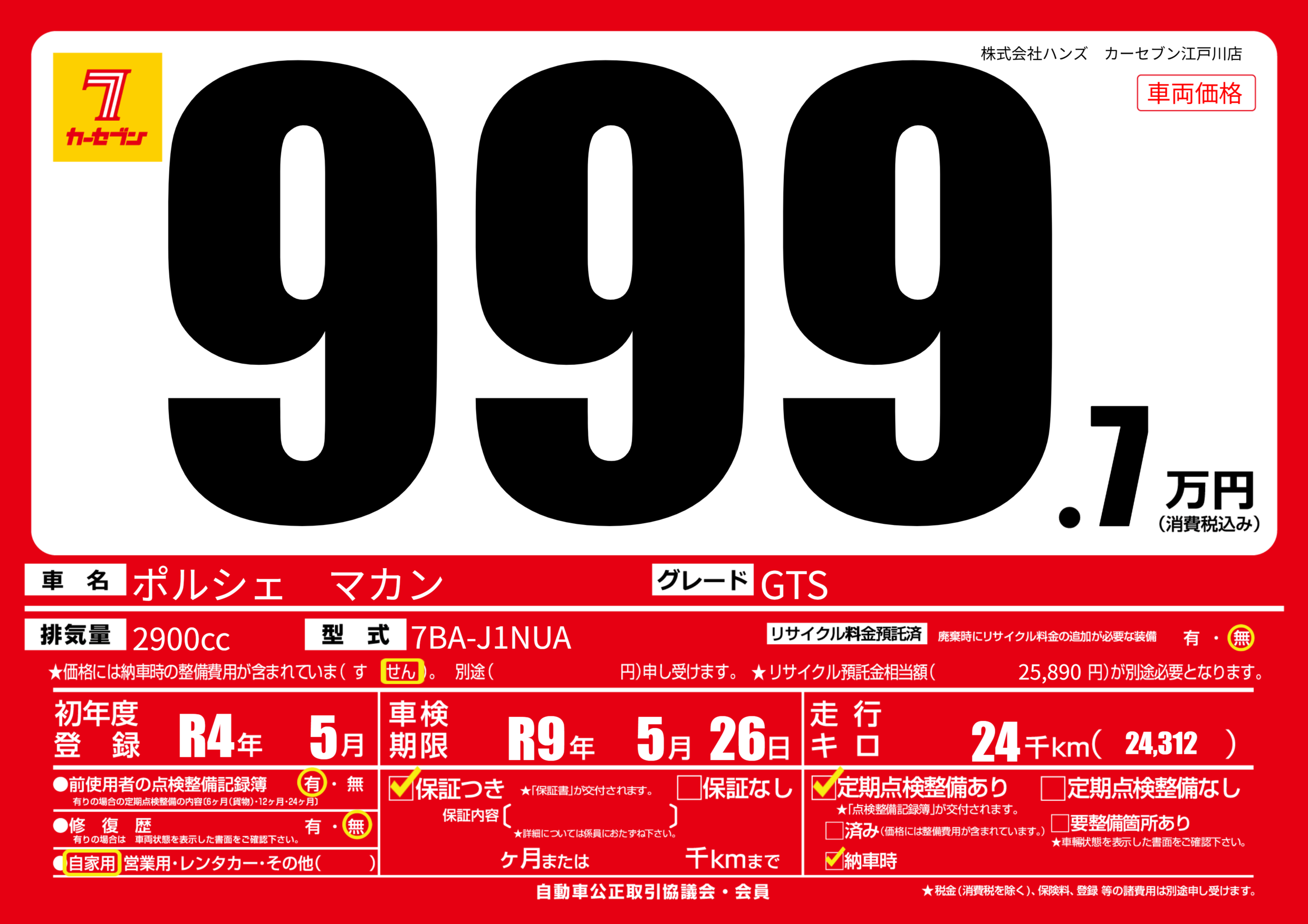 | 車名 | ポルシェ マカン | グレード ミッション 排気量 |