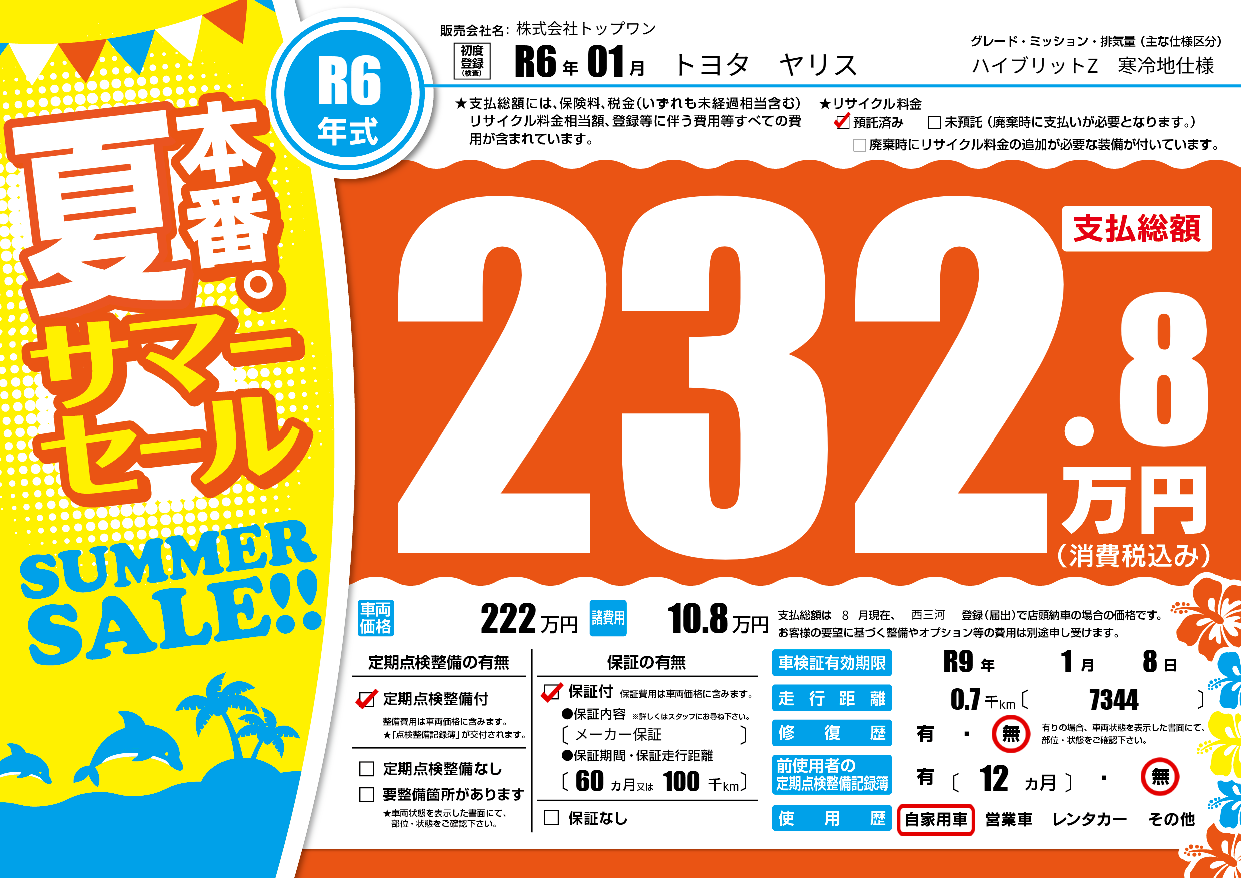 | 走行キロ | - | 初年度登録 | R6年01月 |