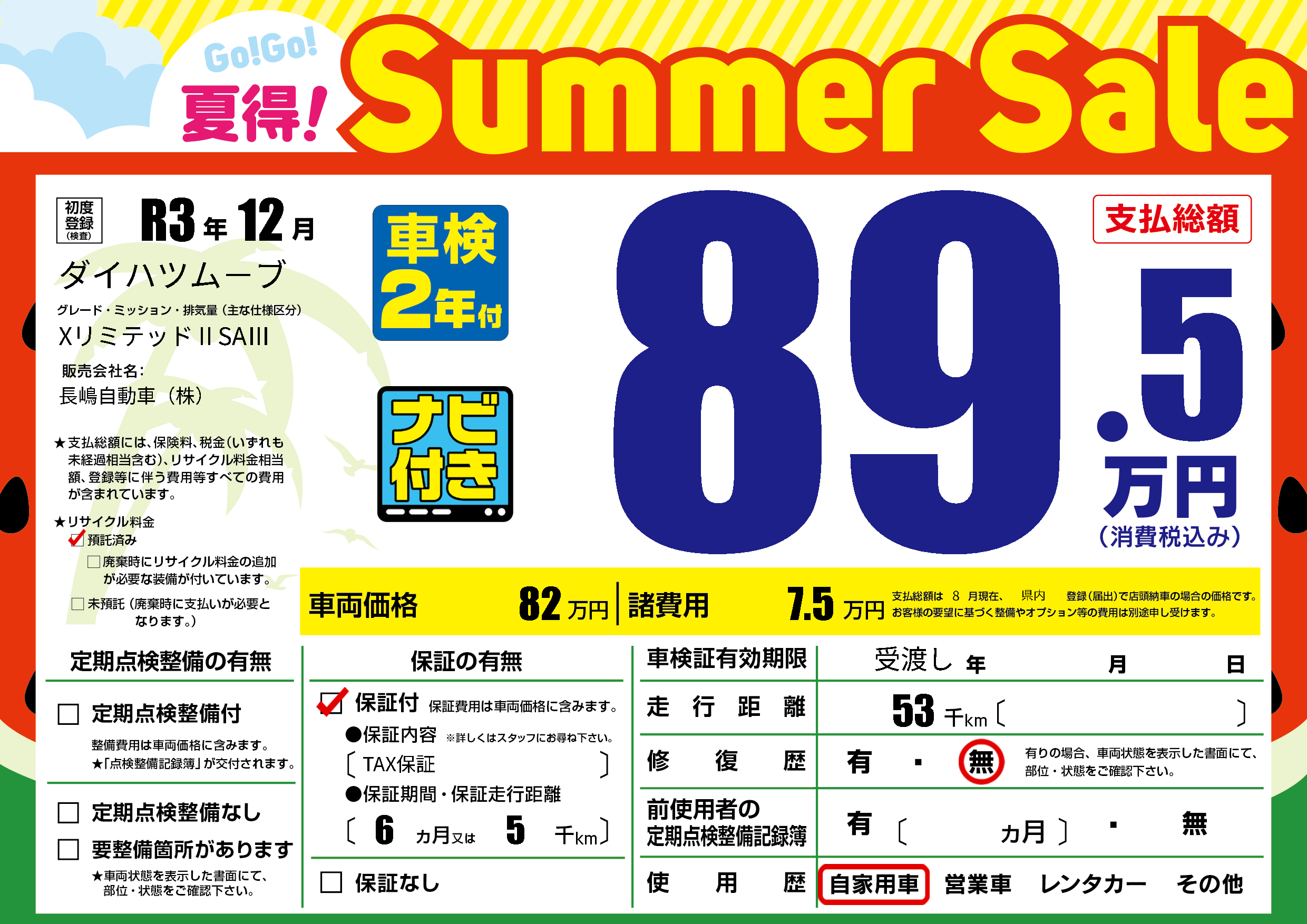 保証付き 保証内容(TAX保証) 6ヶ月または(5)千kmまで |