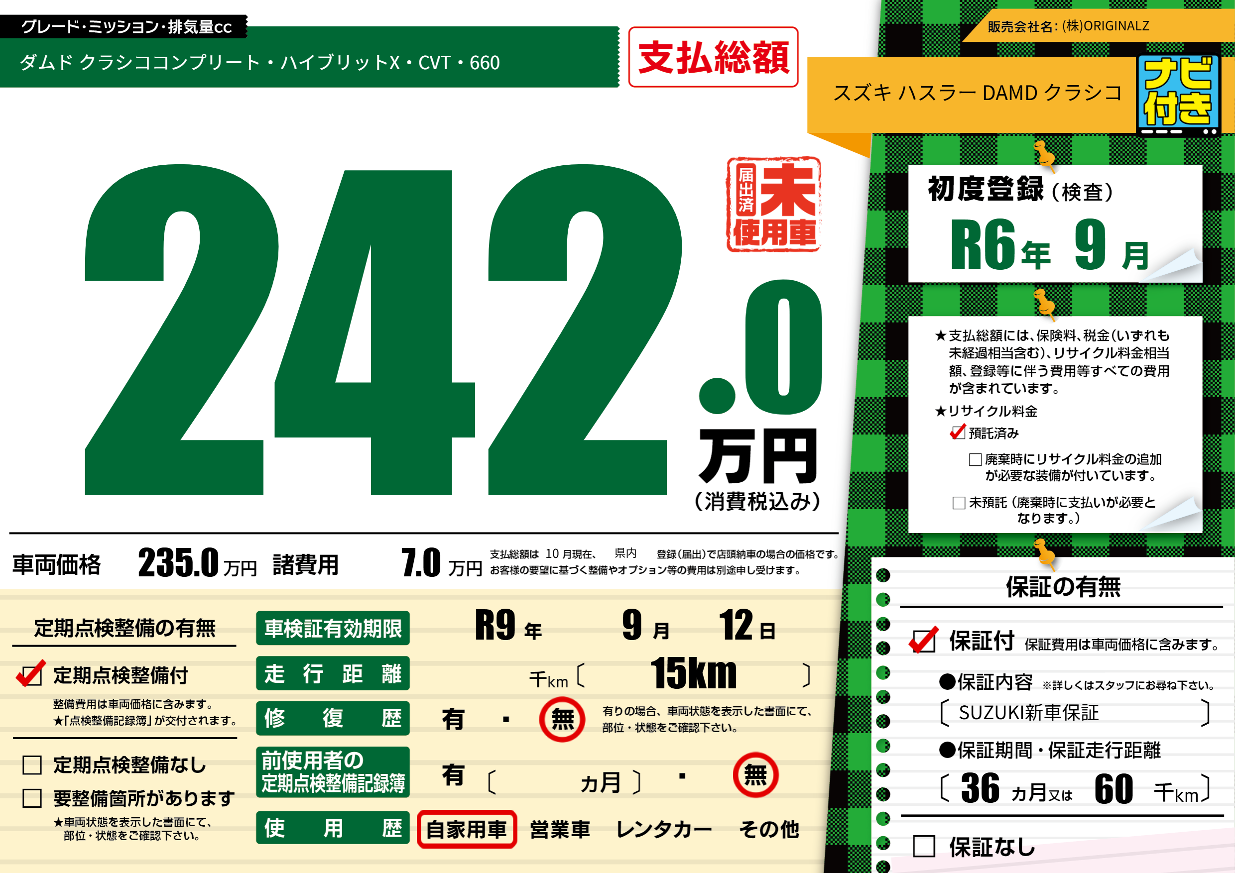 | 走行キロ | - | 初年度登録 | R6年9月 |