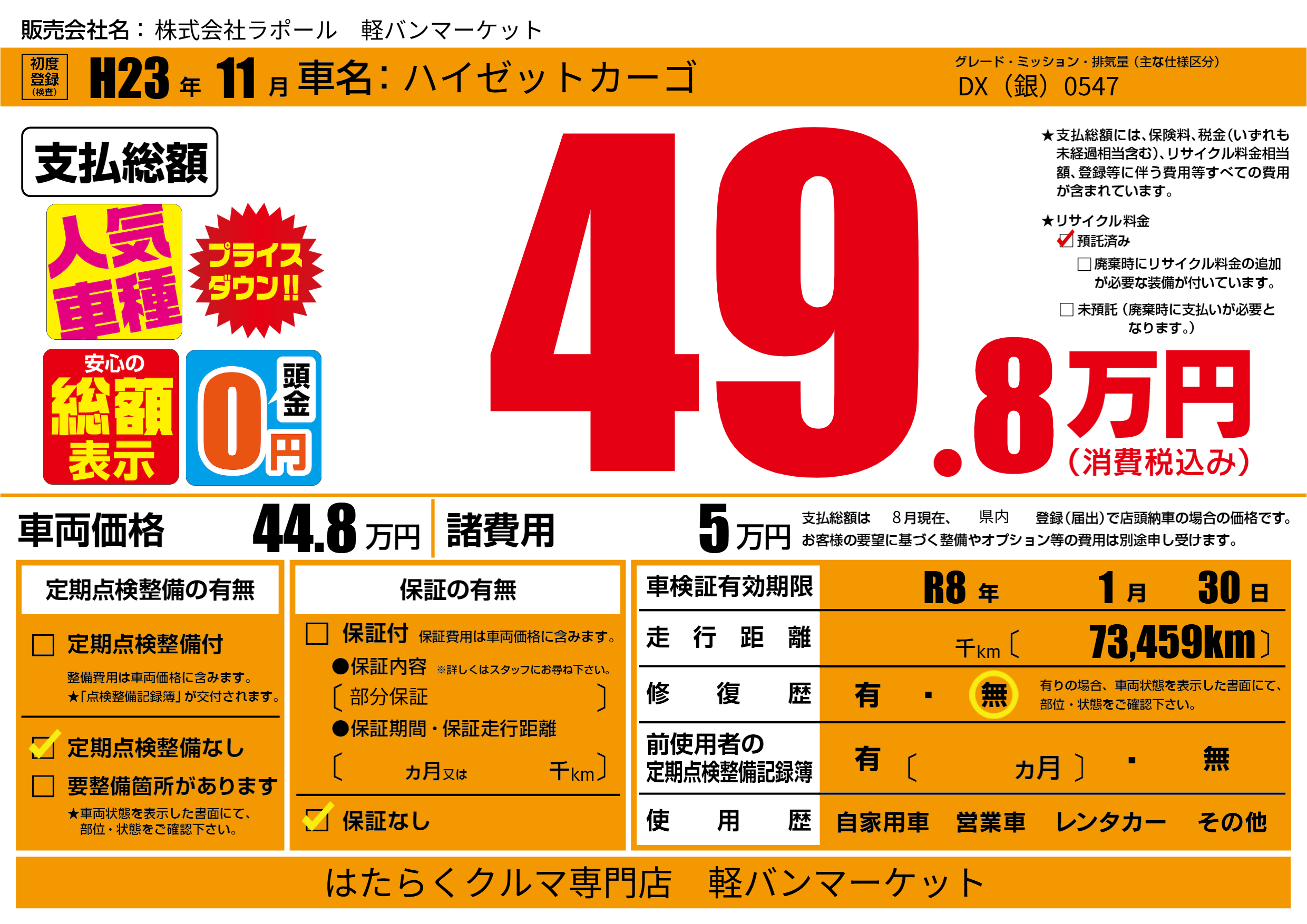 なし | 車検制限 | R8年1月30月 |