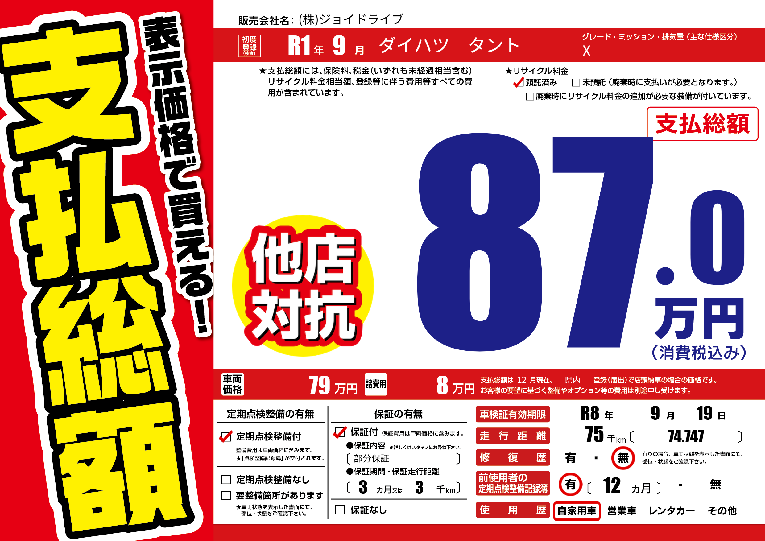 なし | 車検制限 | R8年9月19月 |