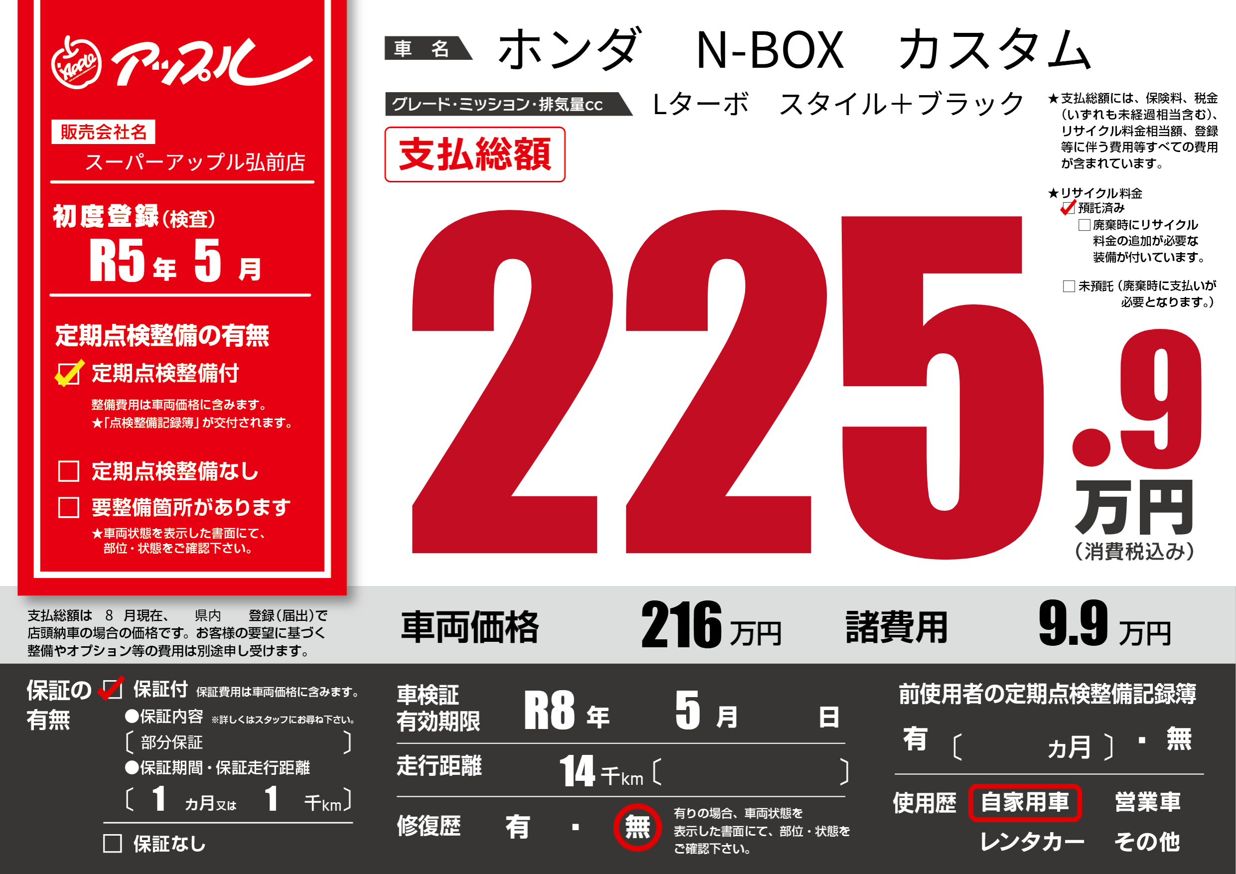 | 走行キロ | 1.4万km | 初年度登録 | R5年5月 |