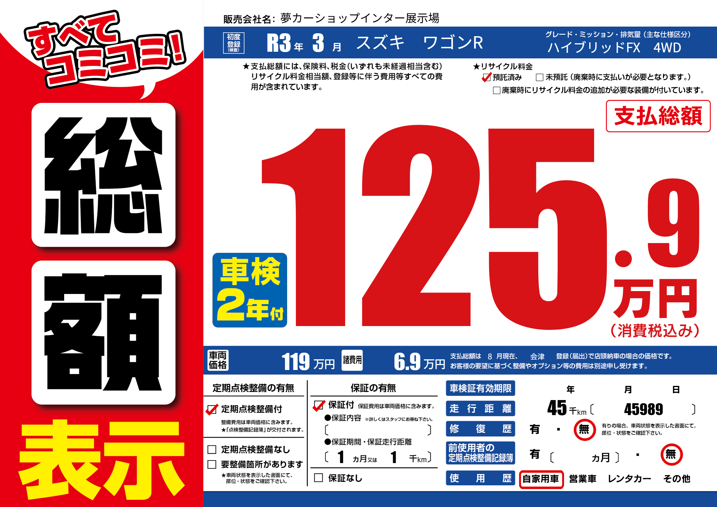| 走行キロ | 4.5万km | ||