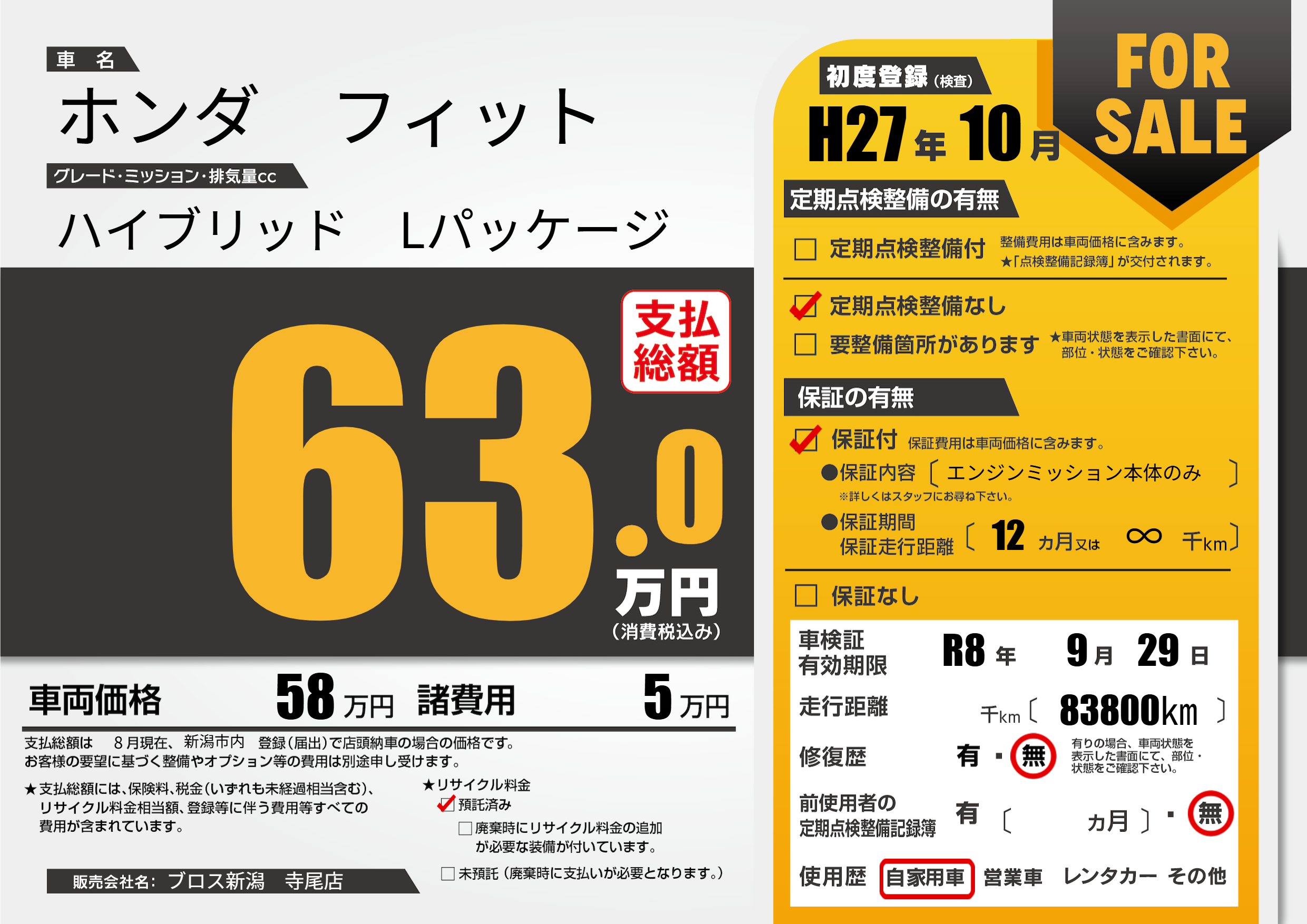 なし | 車検制限 | R8年9月29月 |