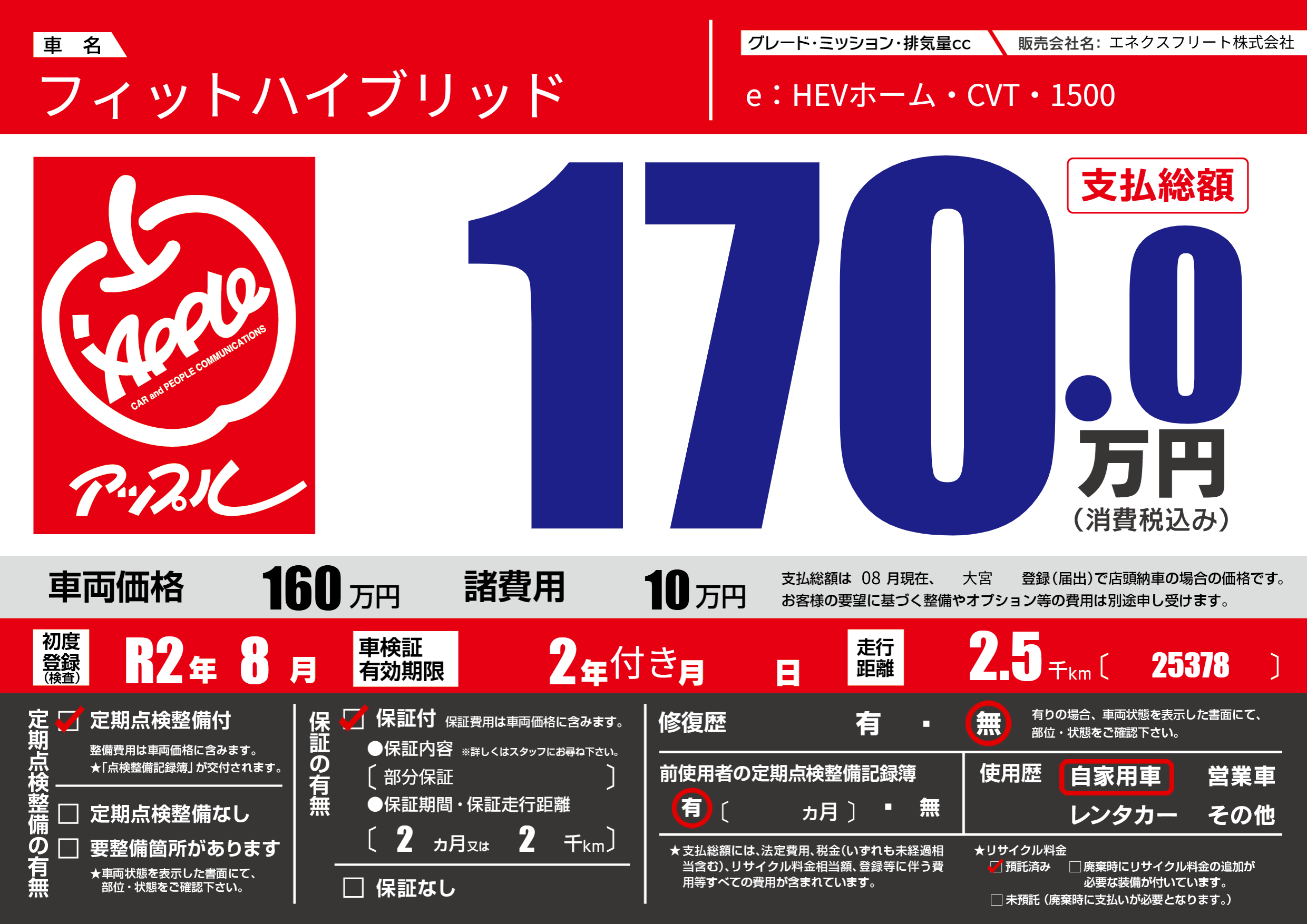 | 走行キロ | 0.2万km | 初年度登録 | R2年8月 |