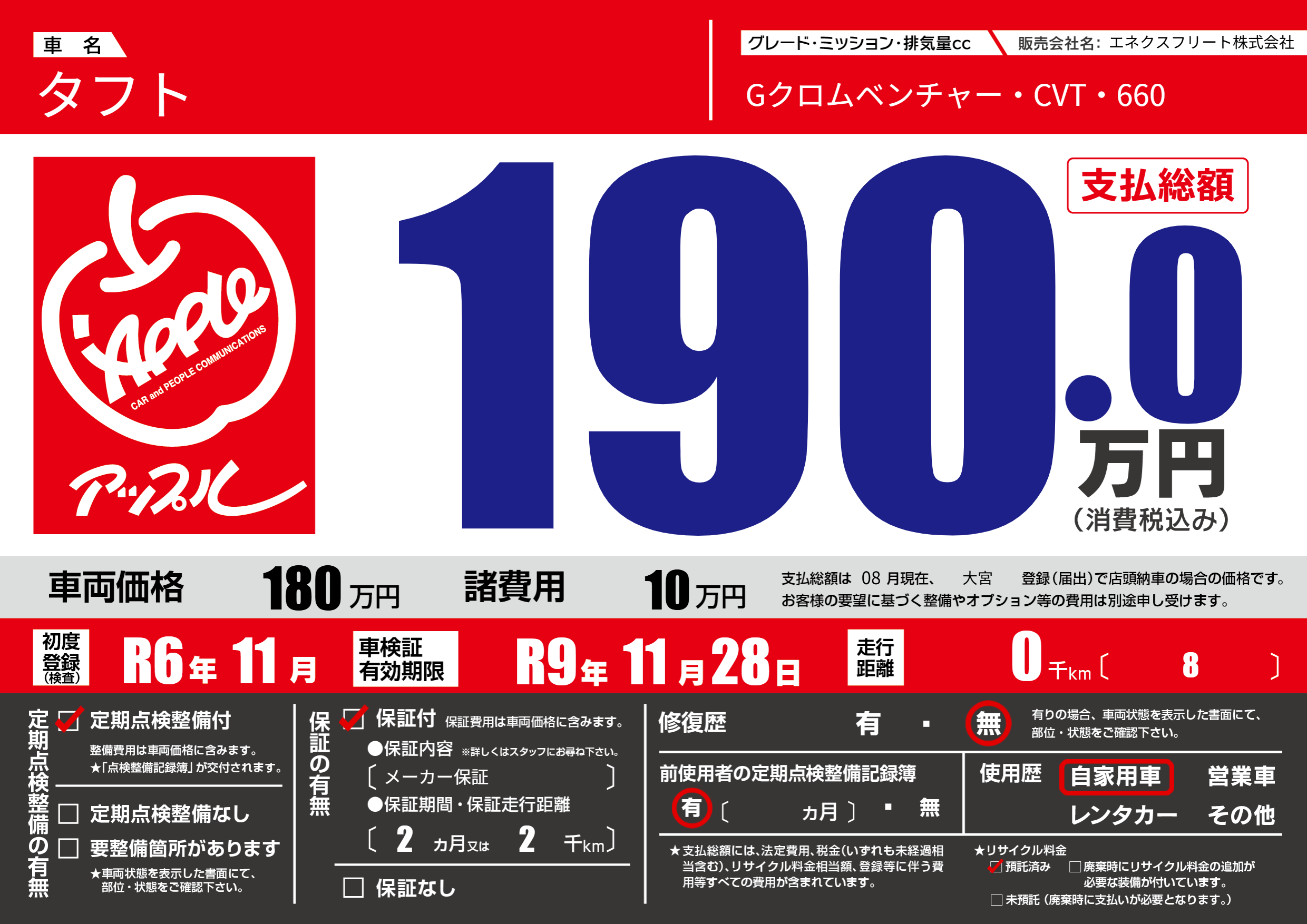 | 走行キロ | - | 初年度登録 | R6年11月 |