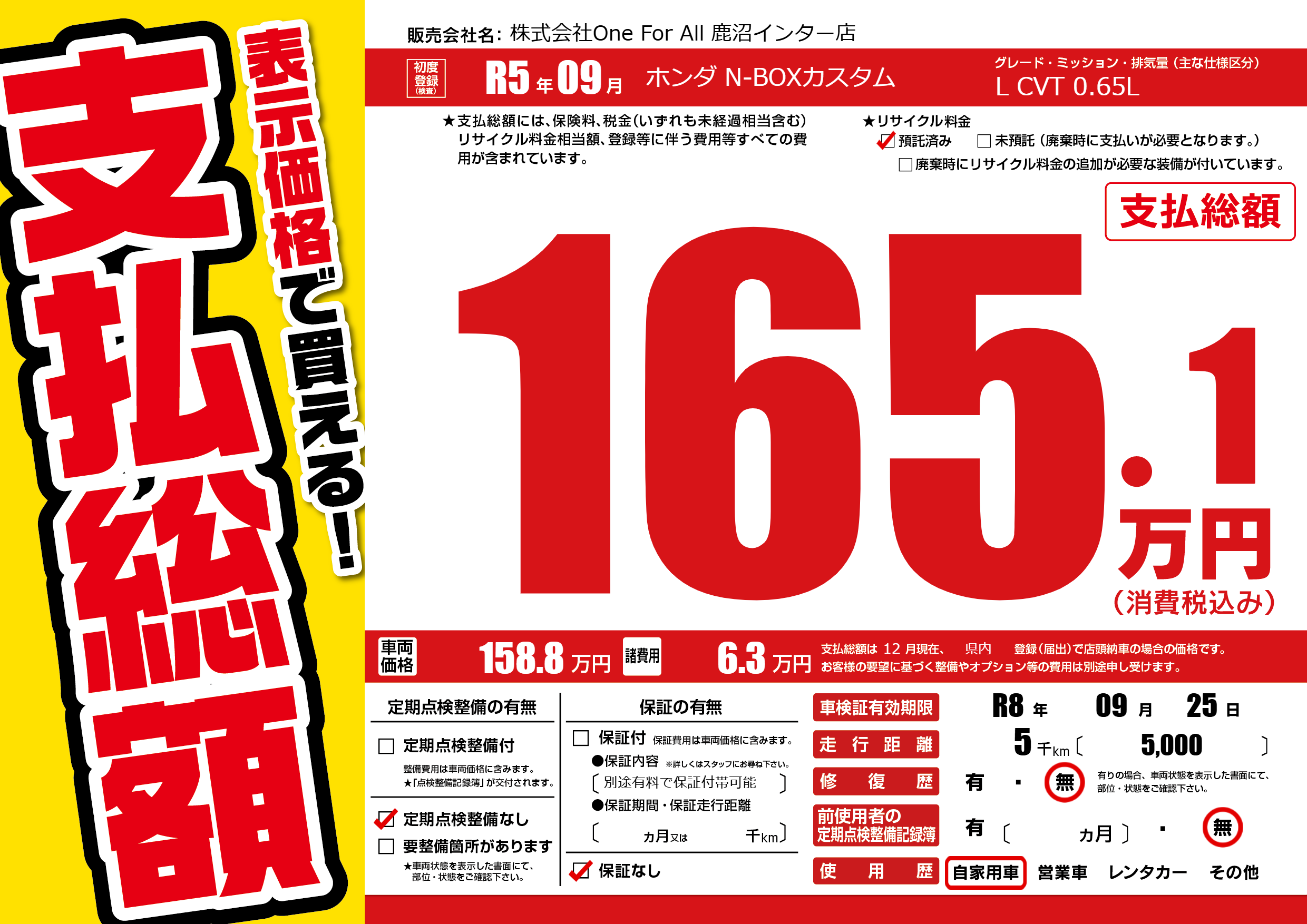 | 走行キロ | 0.5万km | 初年度登録 | R5年09月 |