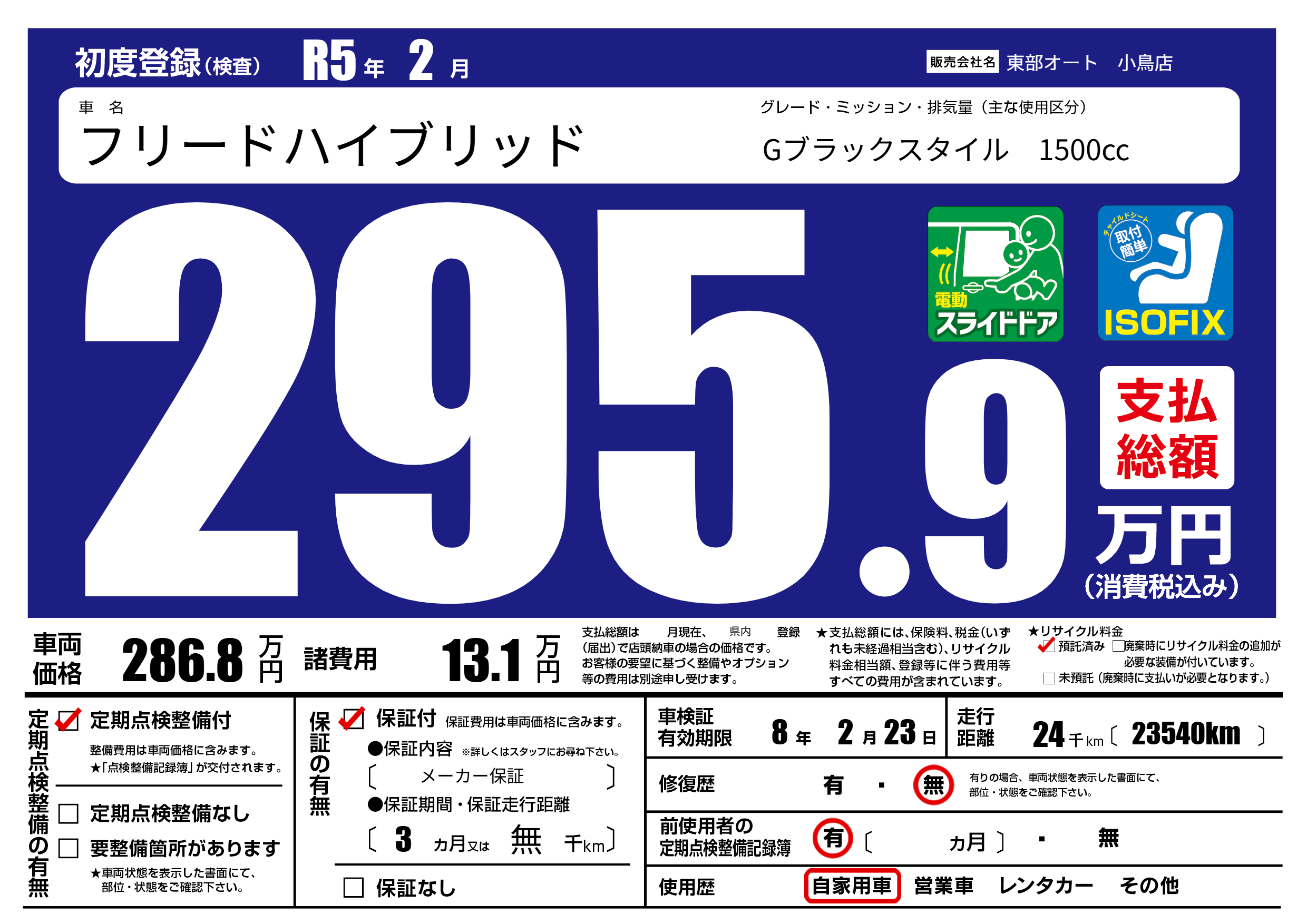 | 車検制限 | 8年 2月 23日 | ||
