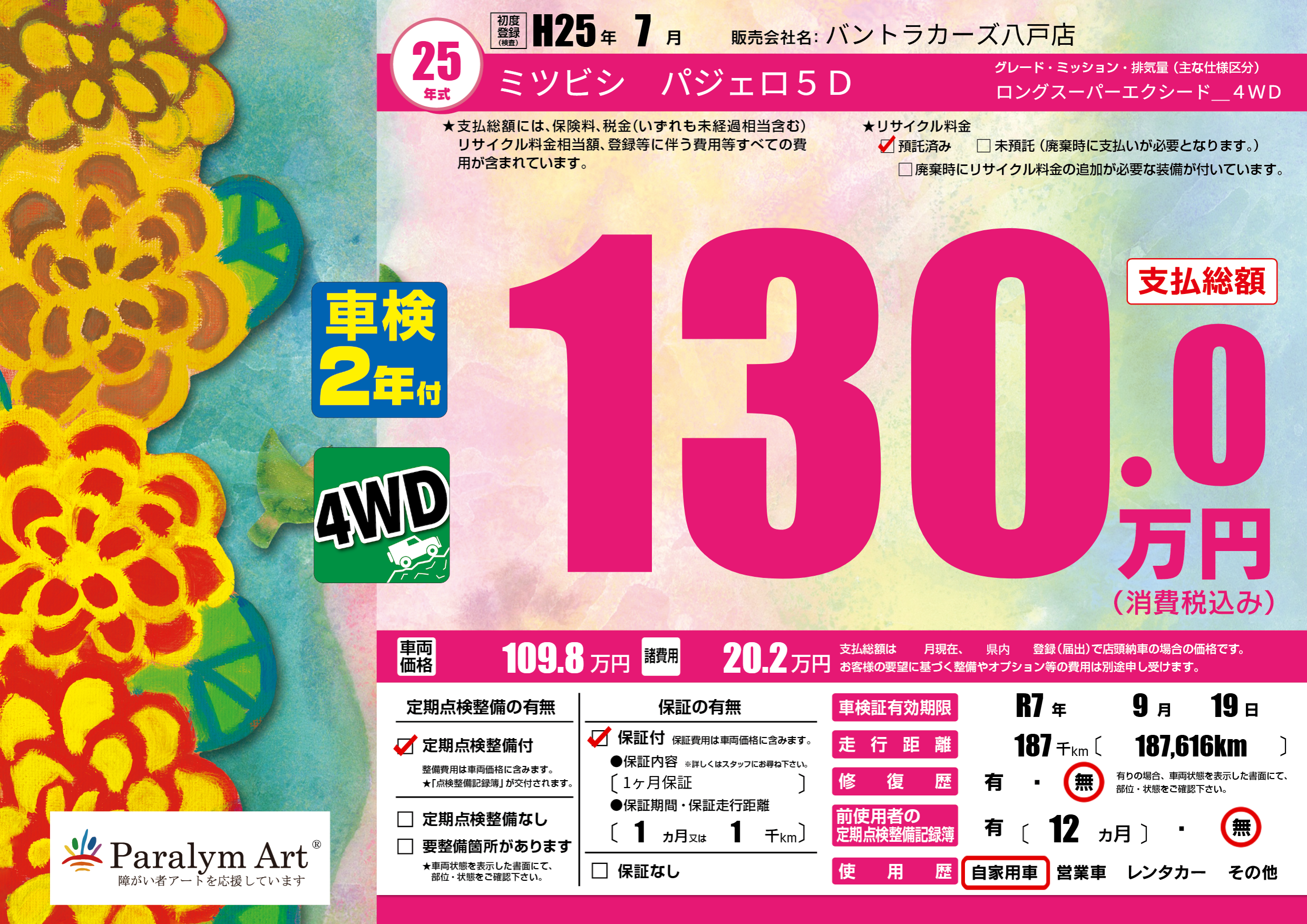 | 車検制限 | R7年 9月 19日 | ||