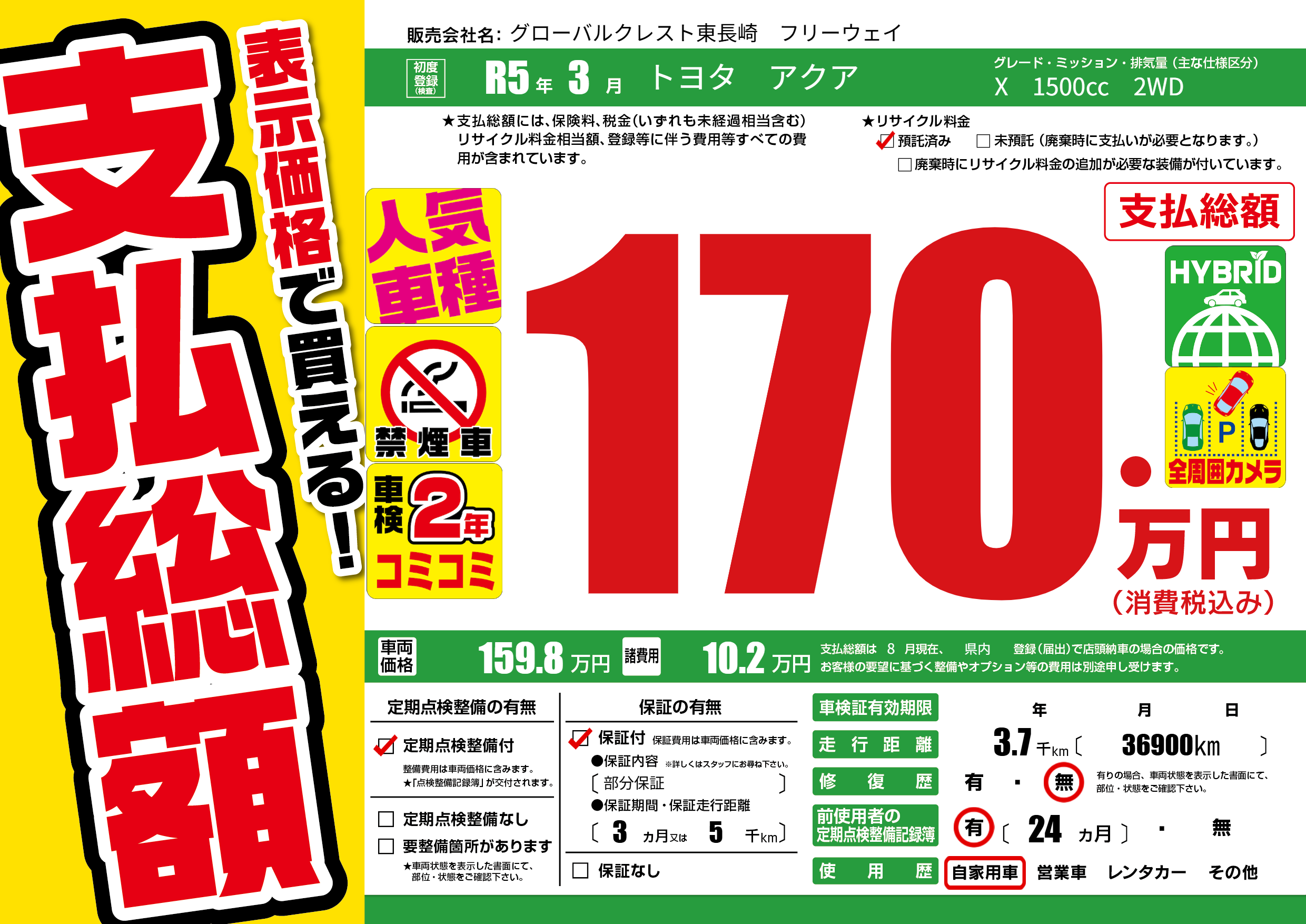 | 走行キロ | 0.3万km | 初年度登録 | R5年3月 |