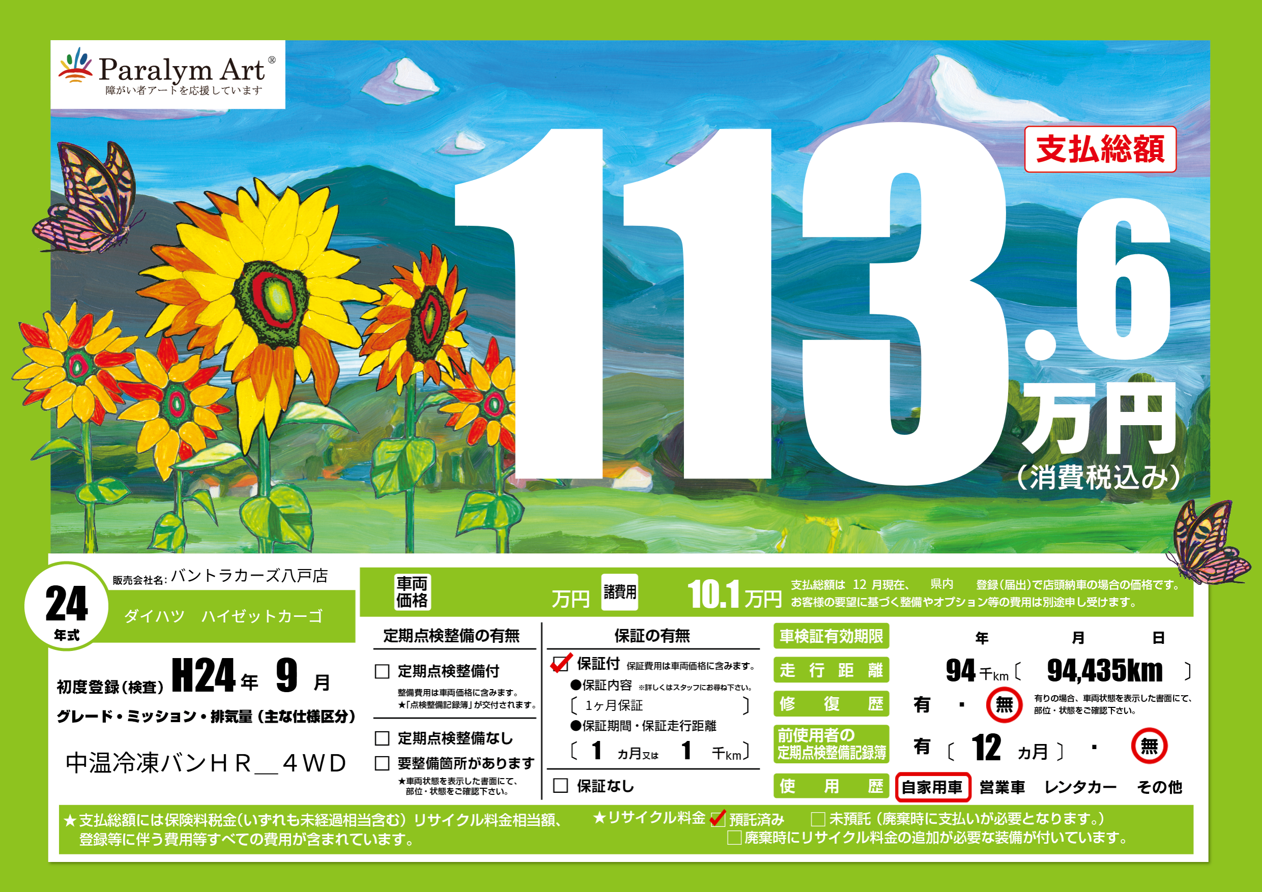 | 走行キロ | 9.4万km | 初年度登録 | H24年9月 |