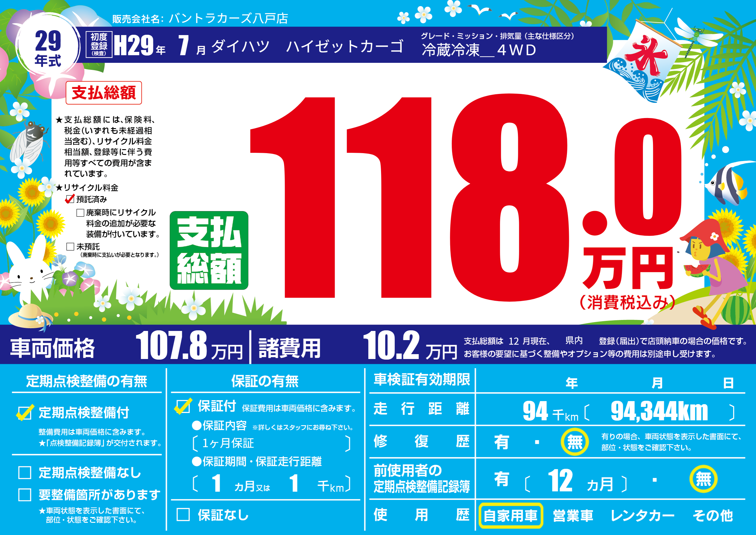 | 走行キロ | 9.4万km | 初年度登録 | H29年7月 |