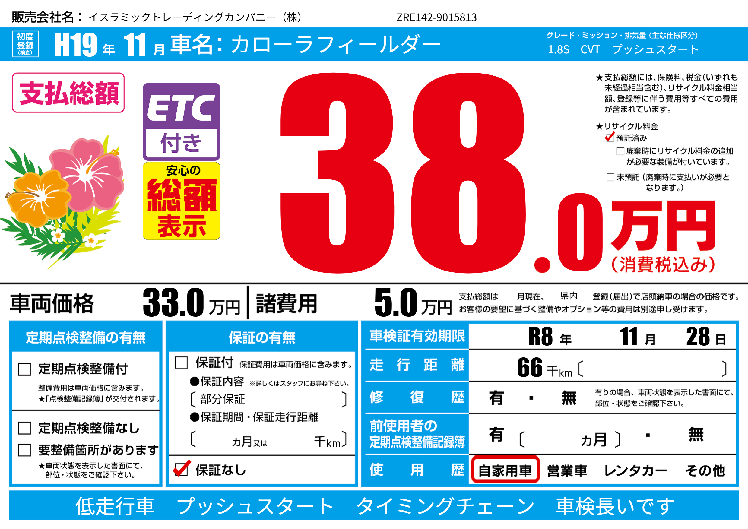 | 車検制限 | R8年 11月 28日 | ||
